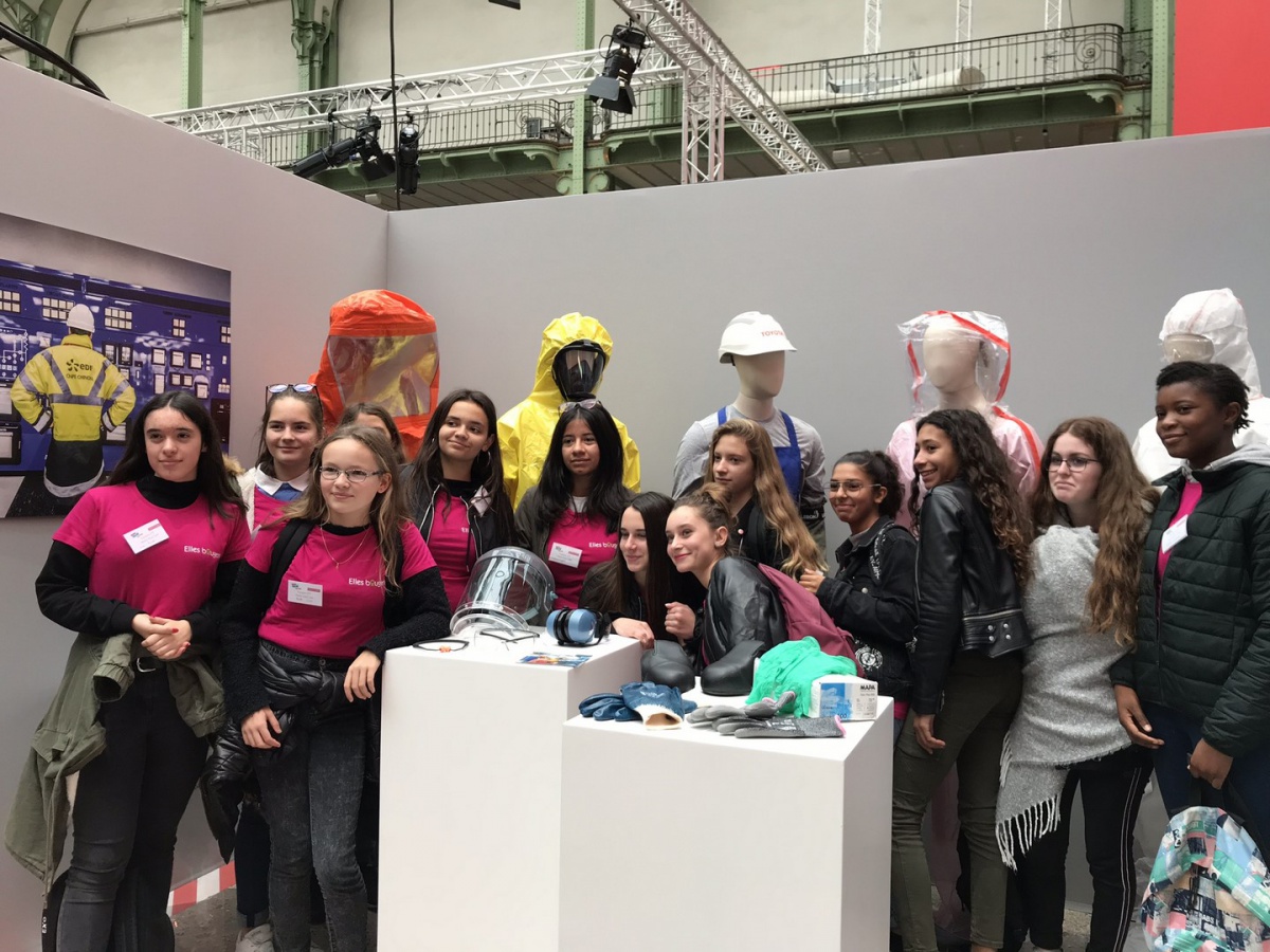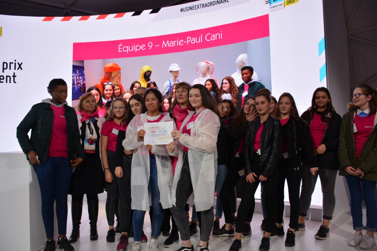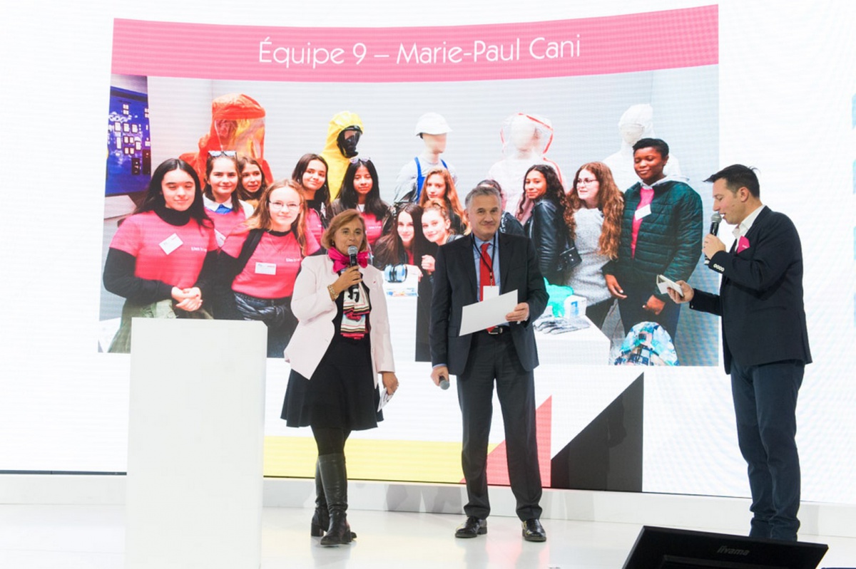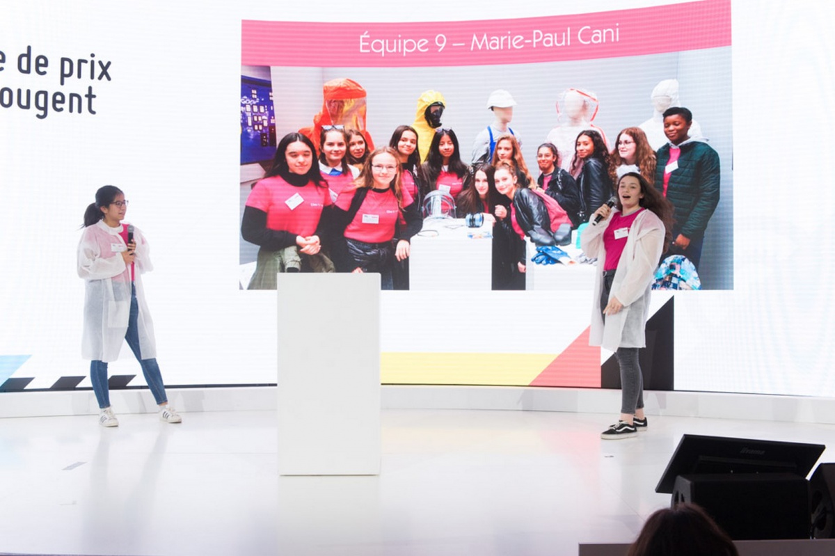 Bravo également aux élèves du Collège Les Remparts à Rozay-en-Brie (77) de l'équipe Marie-Paule CANI, qui a remporté le Prix Coup de Cœur du jury ! C'est en EPI (Equipement de Protection Individuelle) que les deux collégiennes représentant leur équipe sont montées sur scène pour nous expliquer les différentes tenues des métiers de l'industrie. Leur message : les femmes peuvent rester féminines et avoir des enfants tout en travaillant dans ce secteur !