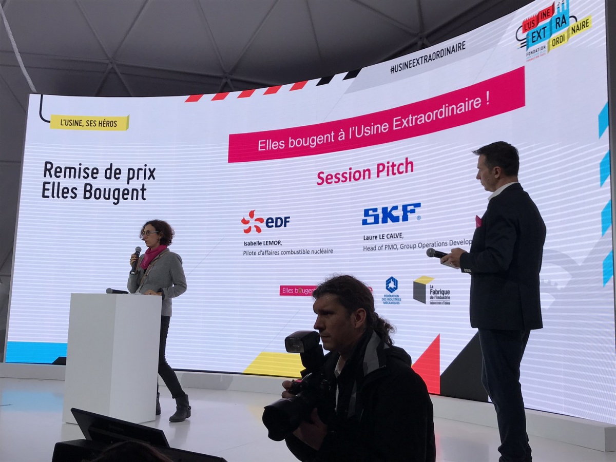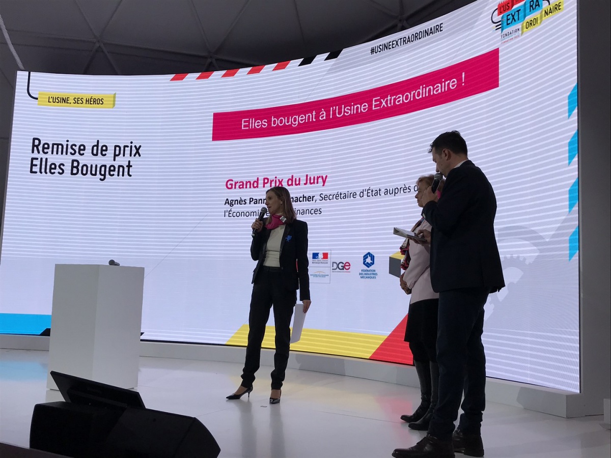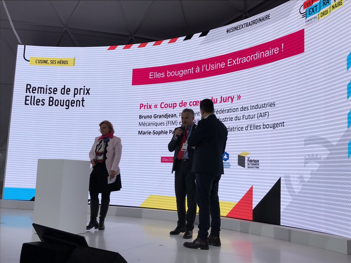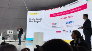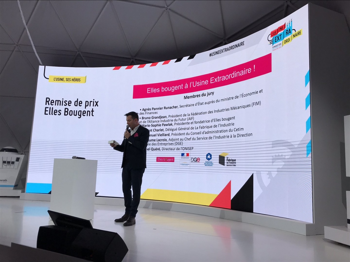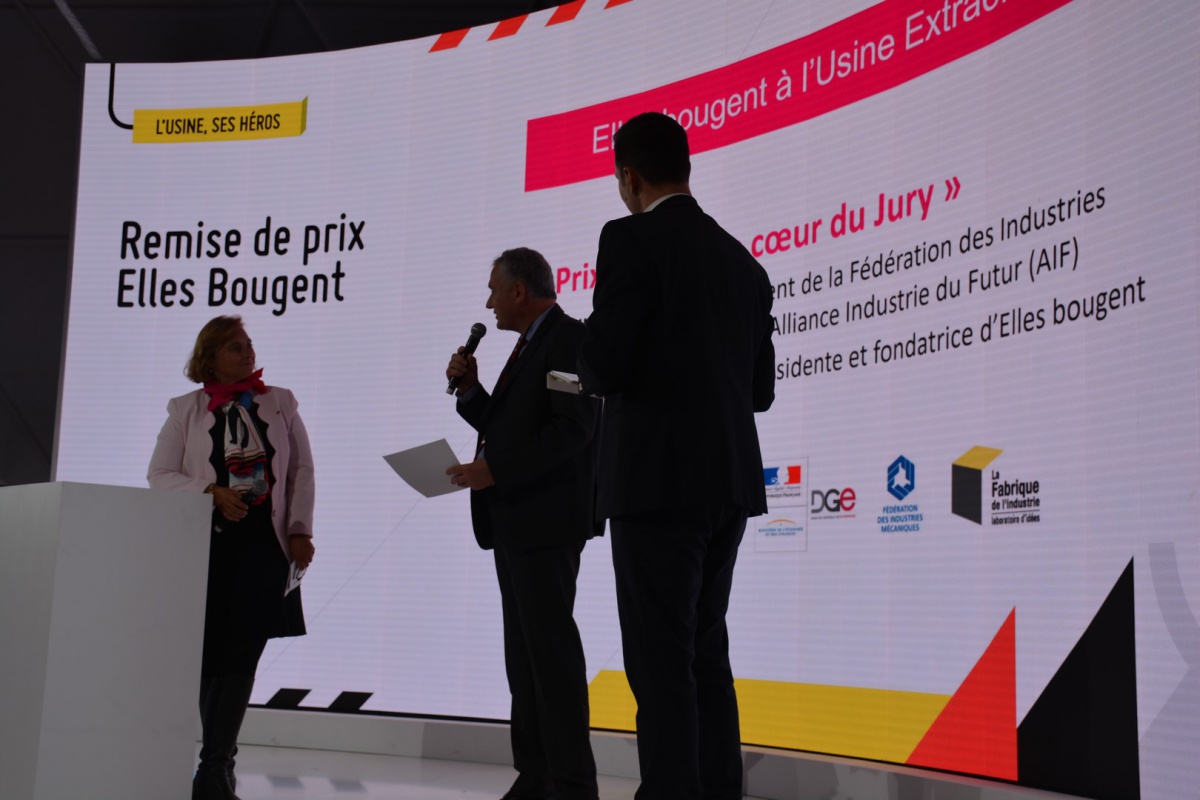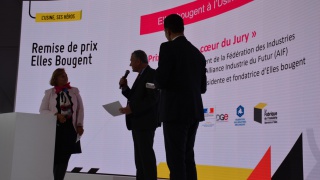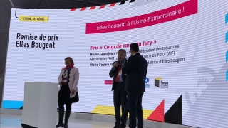 En 1 minute chrono, les 10 équipes se sont ainsi succédé devant un jury composé de Bruno Grandjean, Président de la FIM et de l'Alliance pour l'Industrie du Futur, Marie-Sophie Pawlak, Présidente et Fondatrice d'Elles Bougent, Vincent Charlet, Délégué général de La Fabrique de l'Industrie, Emmanuel Vielliard, président du conseil d'administration du Cetim, Guillaume Lacroix, Adjoint au chef du service de l'industrie à la direction générale des entreprises (DGE) et Agnès Pannier-Runacher, Secrétaire d'Etat auprès du Ministre de l'Economie et des Finances.