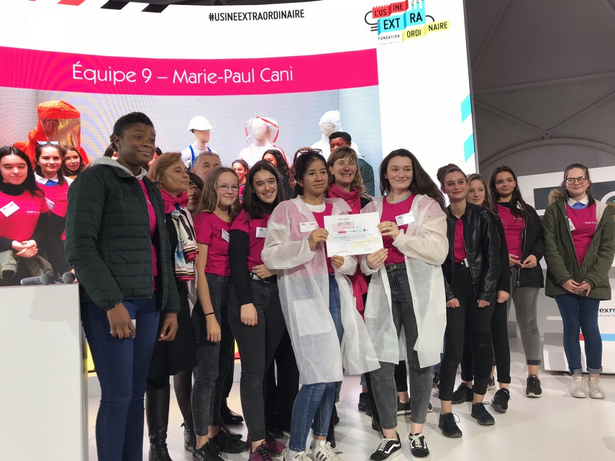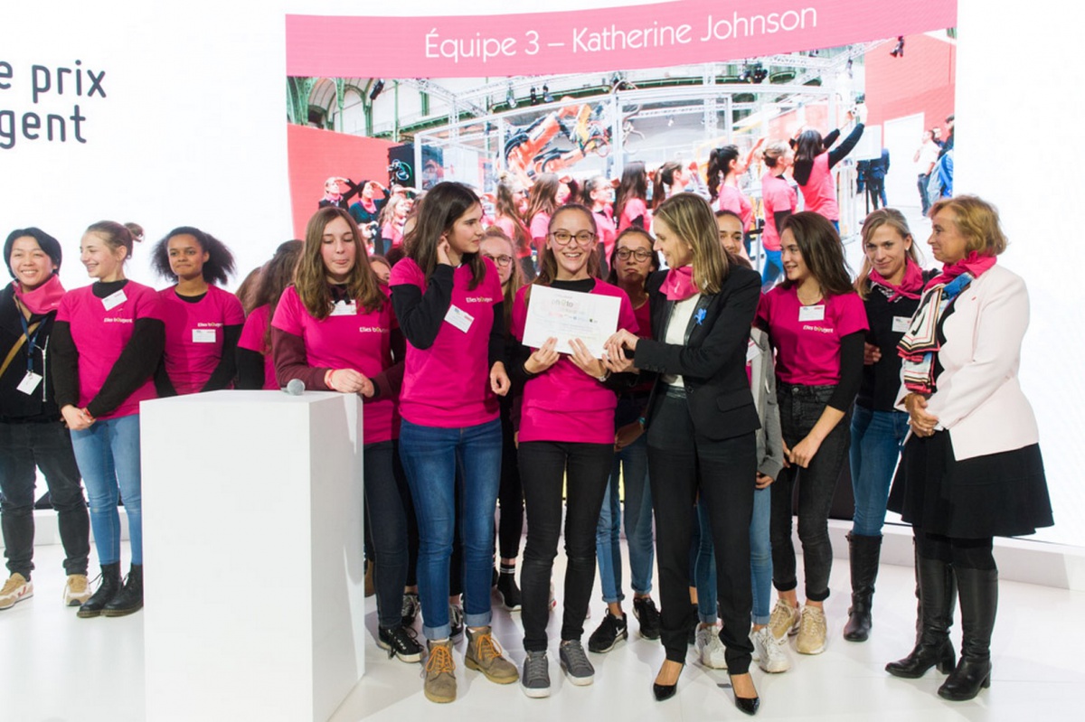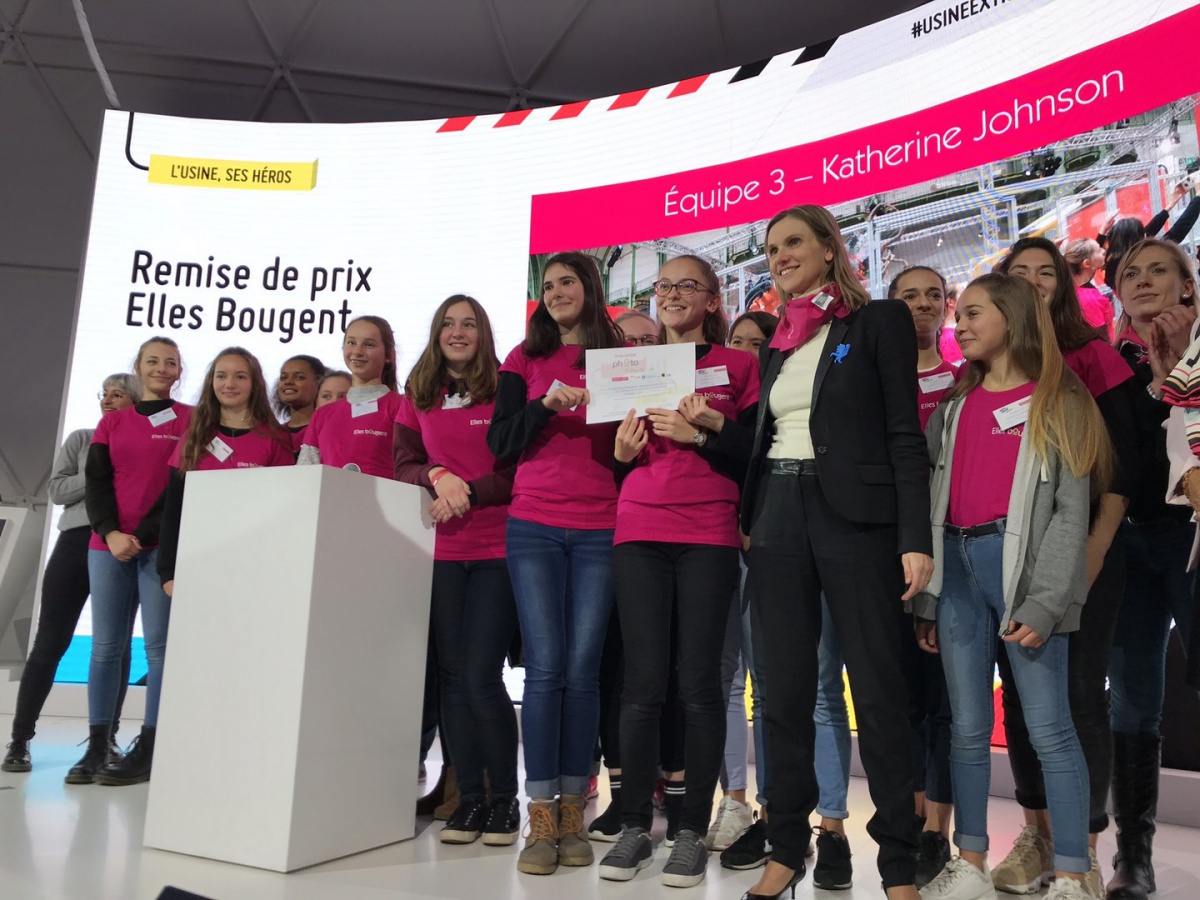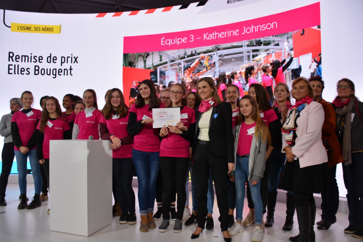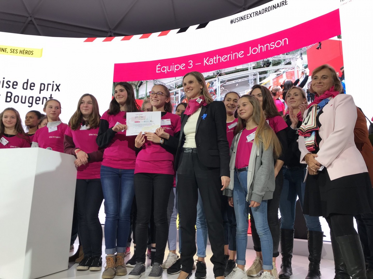 Bravo aux élèves du Collège Rolland Vasseur de Vigny (95) de l'équipe Katherine Johnson, lauréates du Grand Prix du jury pour leur photo représentant les maillons de la chaîne de production. Leur message fort a impressionné le jury : « Si on enlève une femme, la chaîne se brise ». Conclusion : les femmes sont toutes autant légitime dans ces métiers !