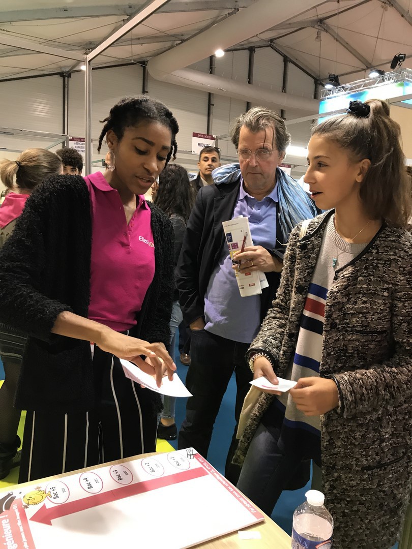 L'association Elles Bougent était présente au salon de l'Etudiant Spécial Parents, le samedi 7 octobre à Paris, pour répondre aux questions des collégiennes, lycéennes et leur parents sur les différentes voies pour devenir ingénieure.
