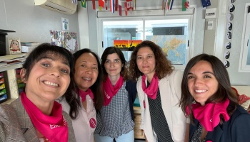 Lundi 13 mai, cinq marraines de l'association Elles Bougent - Juliette Hébert (ArianeGroup), Karen Gonzalez (ArianeGroup), Marion Meteyer (ArianeGroup), Trang Pham (Thales Group), et Sarah Desablens (Safran Group) - se sont rendues à l'école primaire Sainte Marie de Mérignac pour rencontrer deux classes de CM2.