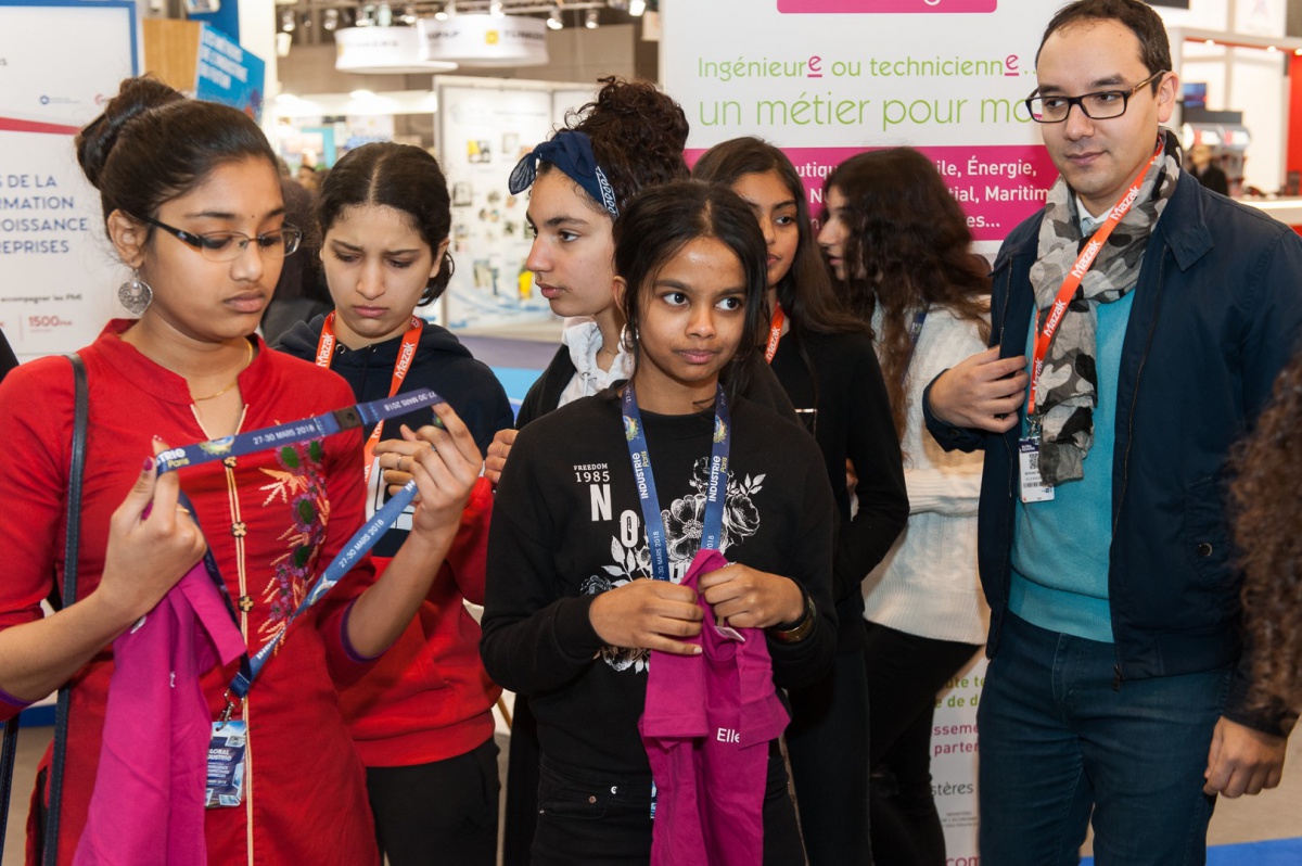 Retour sur la visite de 40 collégiennes au salon Global Industrie et les projets conçus dans le cadre du challenge "Elles Bougent pour l'industrie du futur", le 27 mars, à Villepinte, pendant la Semaine de l'Industrie.