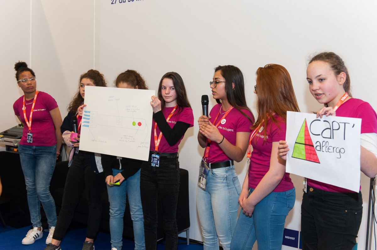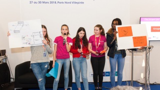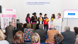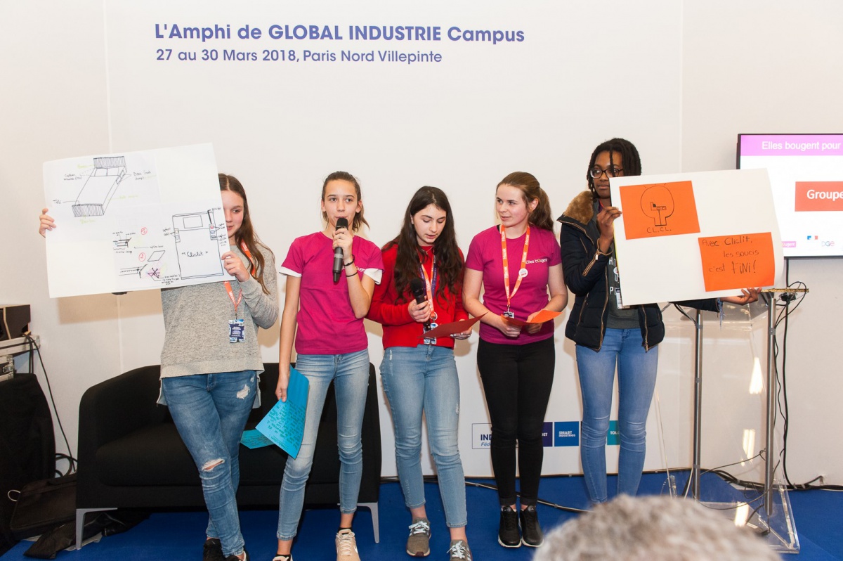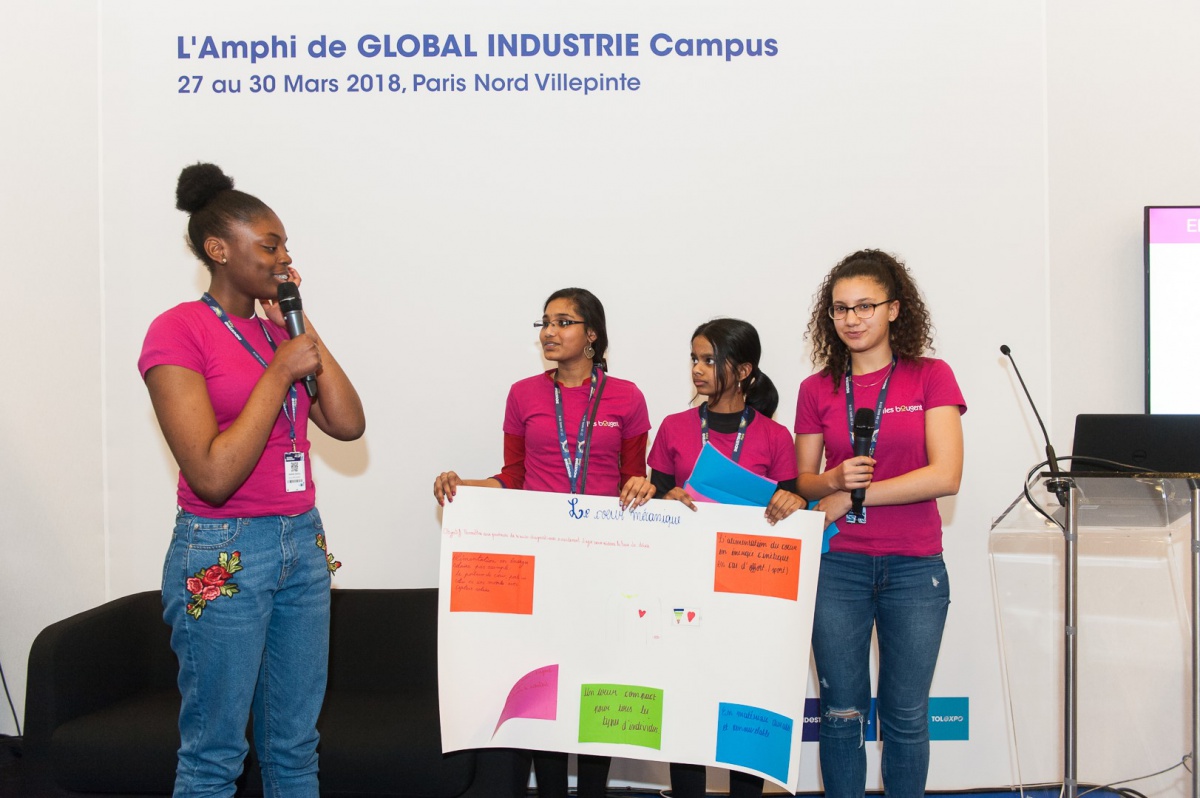40 collégiennes ont visité le salon Global Industrie, ce mardi 27 mars. Aidées de leurs marraines, par équipe, elles ont inventé un projet alliant mécanique et industrie du futur. En fin d'après-midi, elles ont bluffé le public du salon et le jury en prenant le micro pour défendre leurs idées !