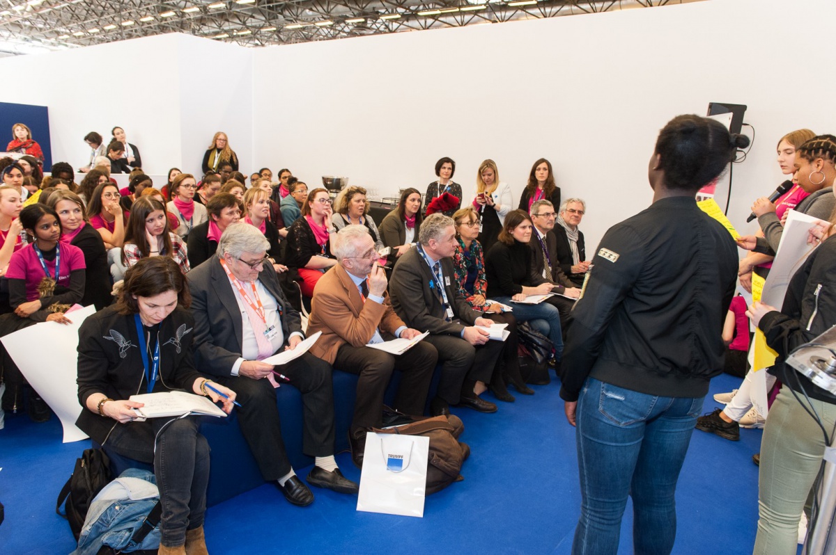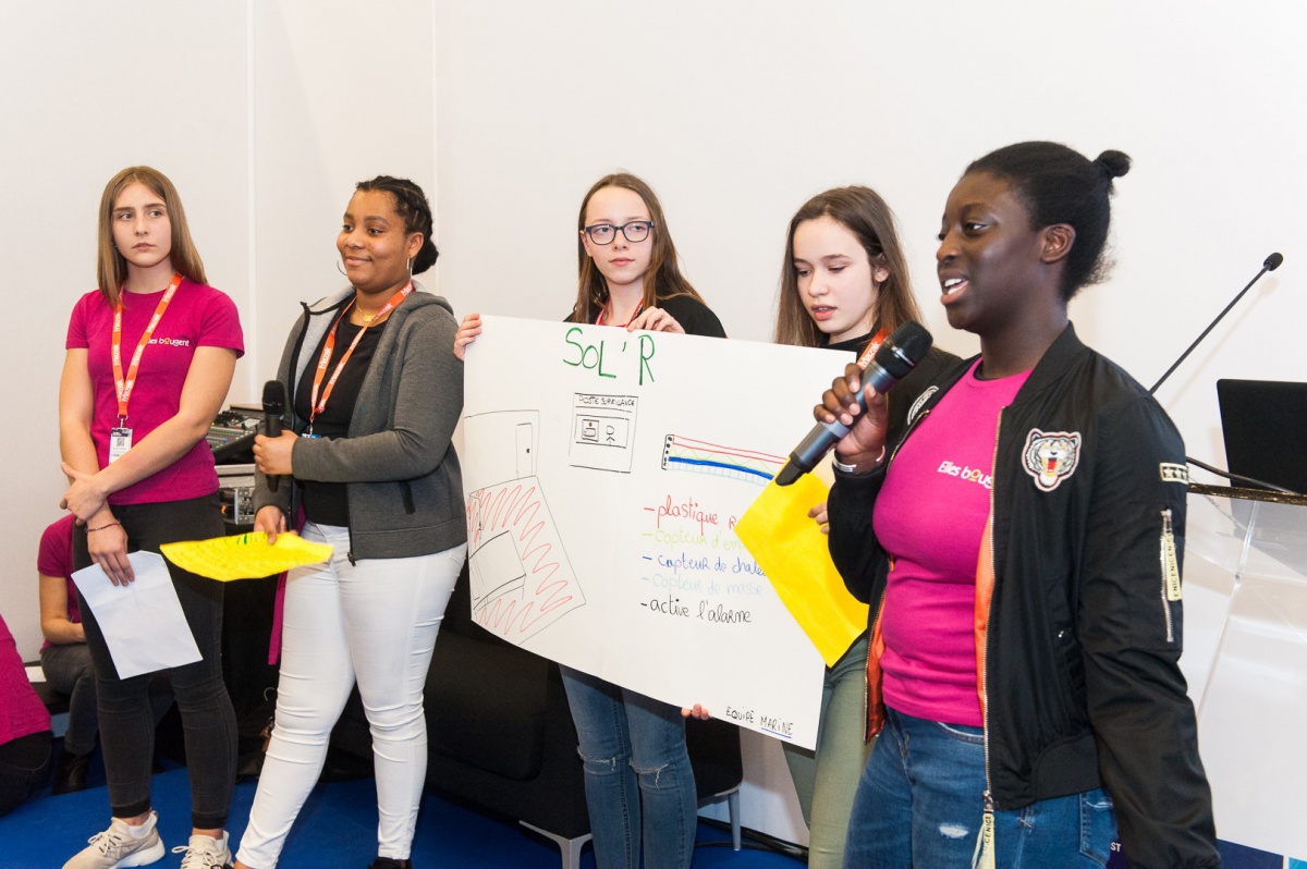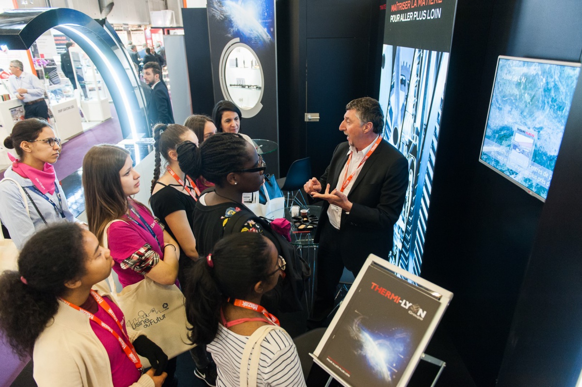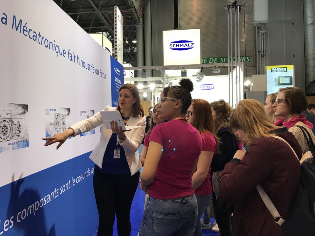 40 collégiennes ont visité le salon Global Industrie, ce mardi 27 mars. Aidées de leurs marraines, par équipe, elles ont inventé un projet alliant mécanique et industrie du futur. En fin d'après-midi, elles ont bluffé le public du salon et le jury en prenant le micro pour défendre leurs idées !