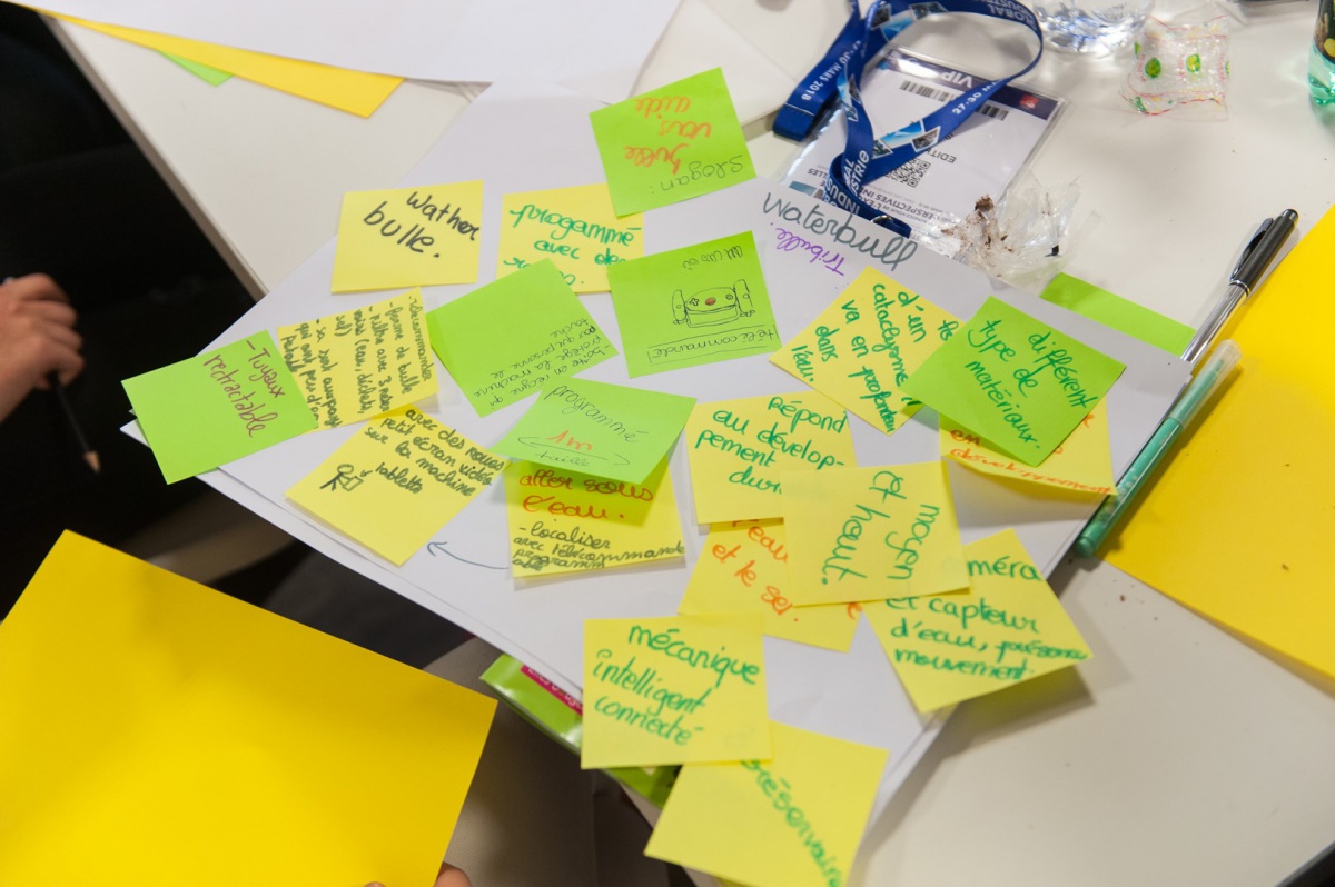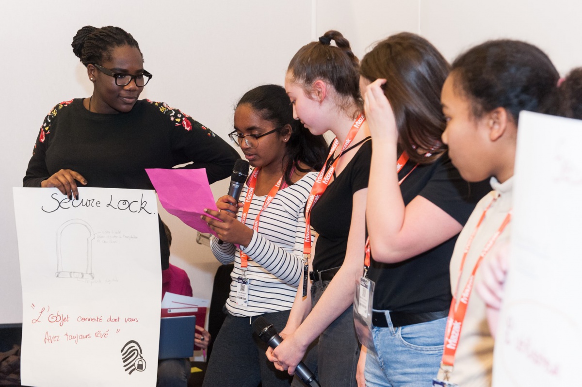« Très belle journée avec des jeunes filles pleines de potentiel. Produire sur le papier un objet innovant en 2h30, en respectant certains critères comme l'environnement, le Digital, etc... Challenge réussi. Bravo mesdemoiselles », Catherine, marraine Air France.