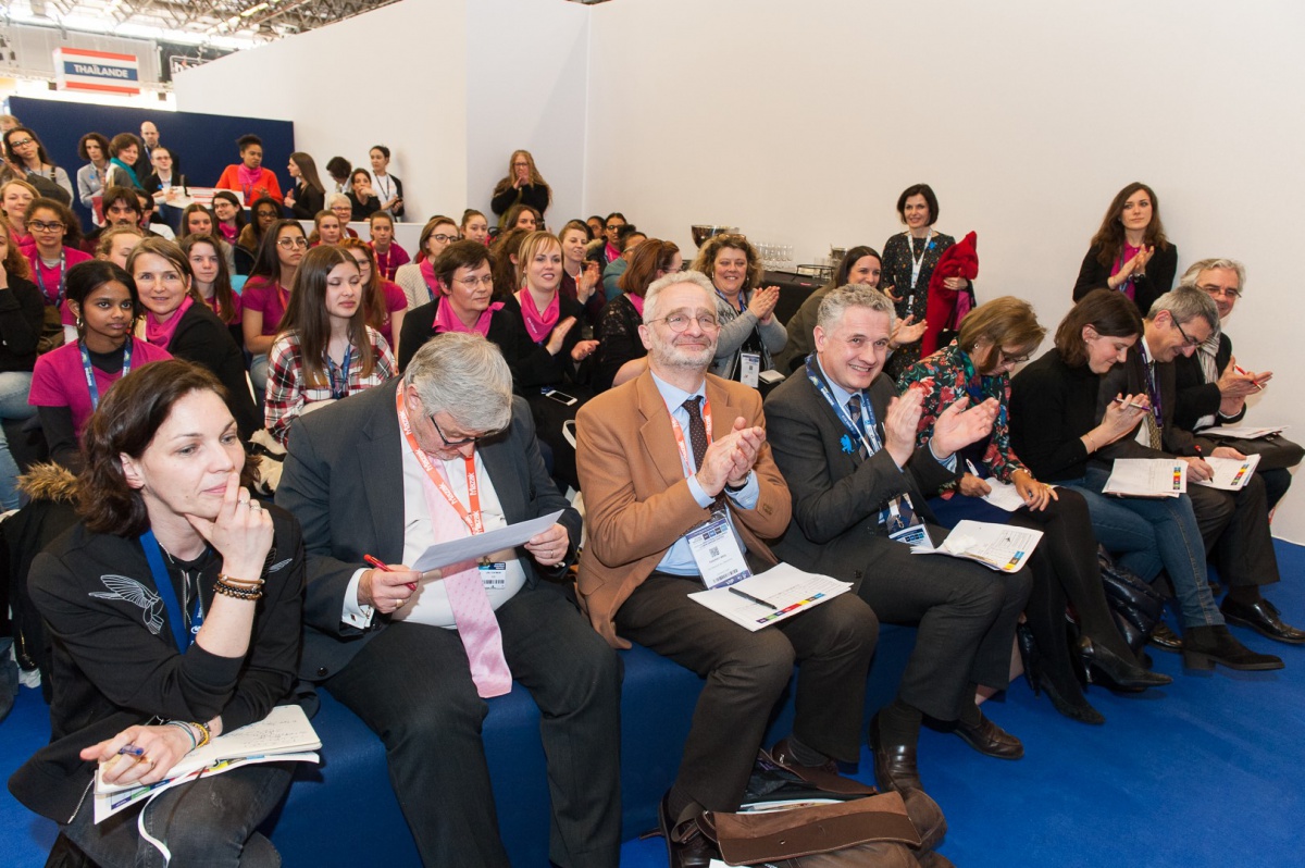 « L'ensemble des jeunes filles reçues se joignent à nous, personnels de Directions, pour vous remercier de cet évènement enrichissant pour ces jeunes filles. Parfois par autocensure, parfois par manque d 'information, elles n'osent affirmer leurs profondes envies et afficher une ambition scientifique. Je vous remercie également pour la qualité de l'organisation, le professionnalisme. Evidemment, il va s'en dire que nous nous réinscrirons pour une si belle aventure l'an prochain ! » Mme Corpas, Principale adjointe, collège Evariste Gallois de Sarcelles (95).