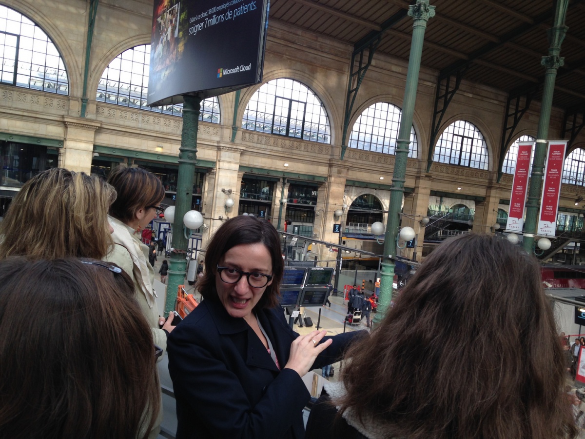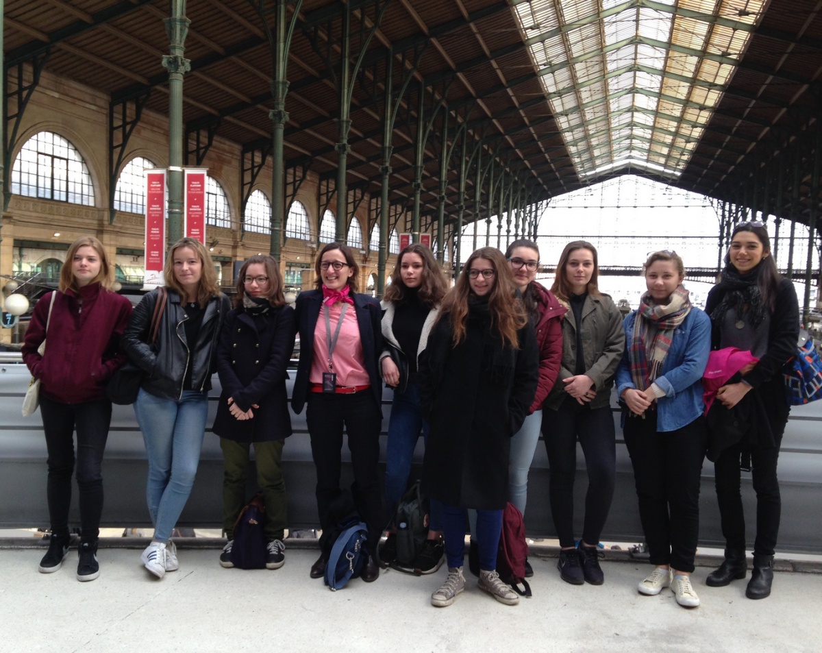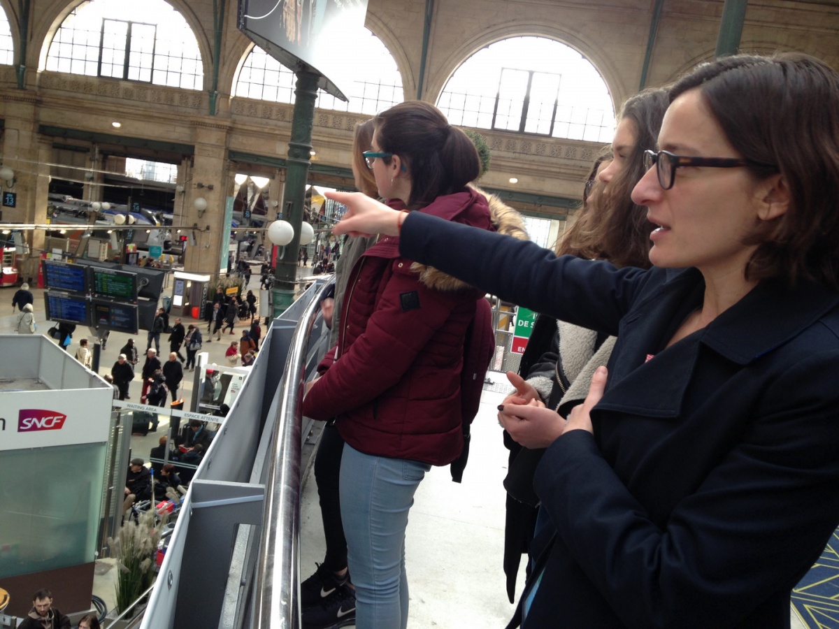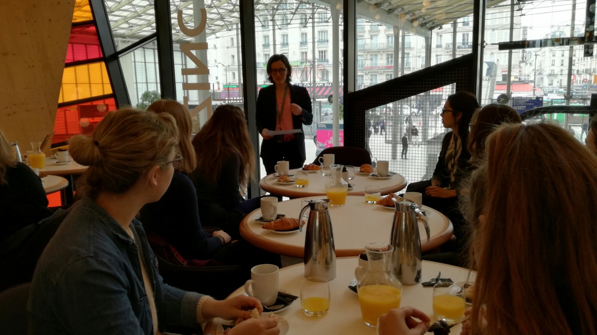 La matinée a débuté par un petit déjeuner avec Linda Maisano, Directrice de l'Établissement d'Exploitation voyageurs de Paris Nord - SNCF. Première femme à occuper ce poste, elle manage 500 personnes et la Gare du Nord est la première gare d'Europe en termes de fréquentation. Elle fait également partie des premières marraines de l'association, lors de sa création, il y a 10 ans. En tant que marraine, elle a expliqué son travail aux élèves de 1ère S du Lycée Saint Nicolas (6ème) et leur a prodigué de nombreux conseils, aux côtés d'une marraine-étudiante de l'ESTACA. Les lycéennes ont ensuite pu visiter la Gare du Nord et son poste de commande, véritable tour de contrôle de la gare. Puis, direction Saint-Denis, en RER, pour découvrir le Technicentre du Landy, où tous les trains de la gare du Nord - Thalys et Eurostar compris - sont entretenus et réparés.