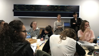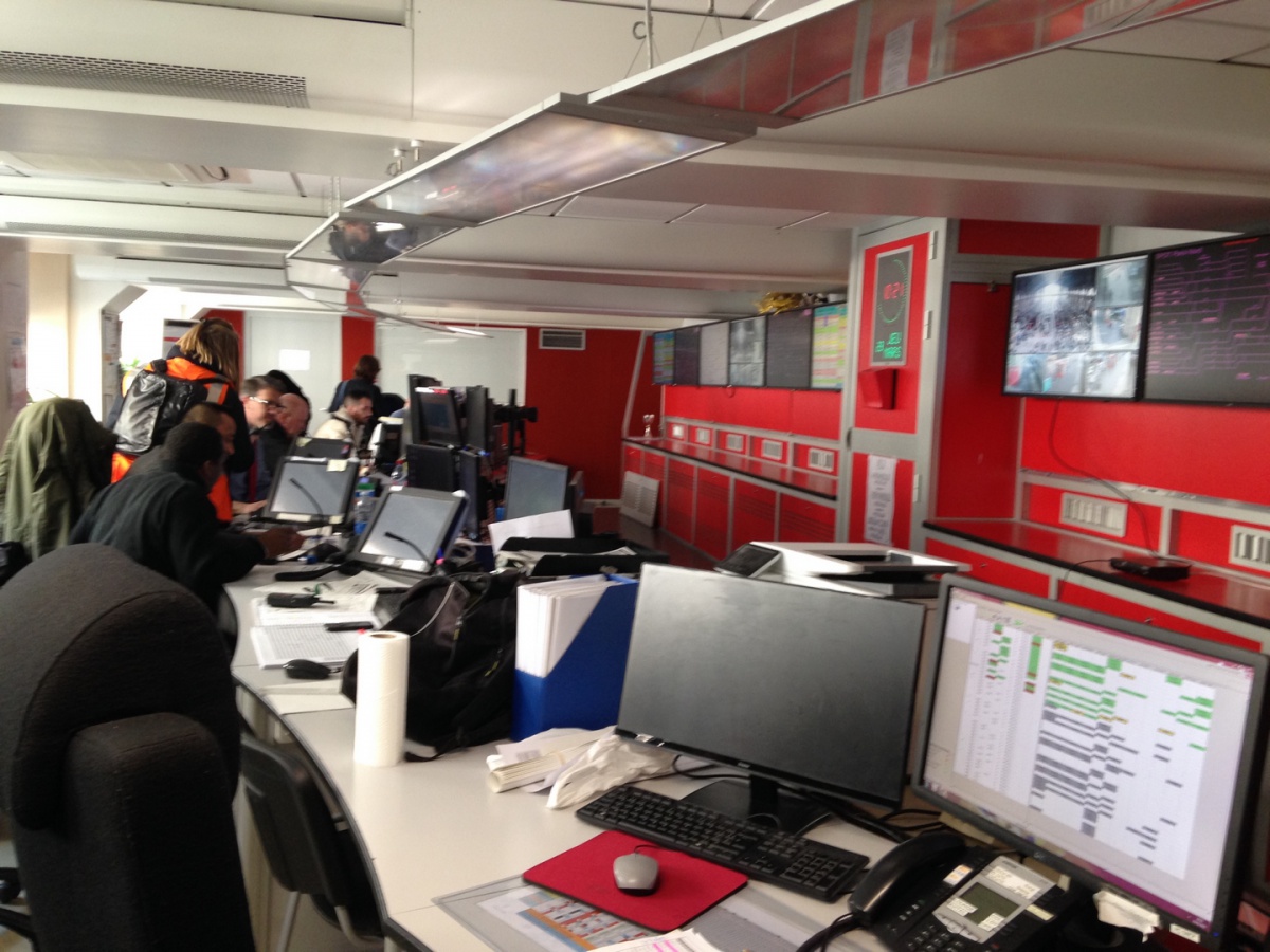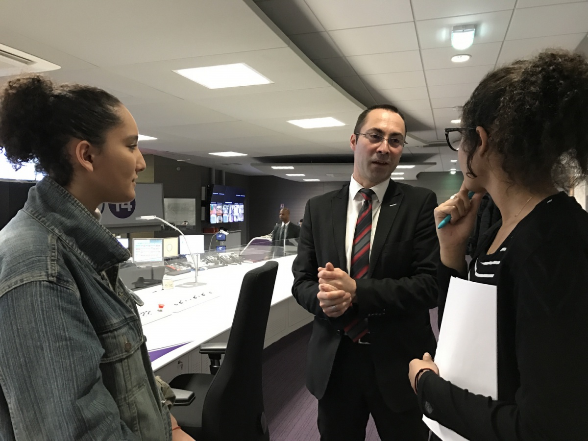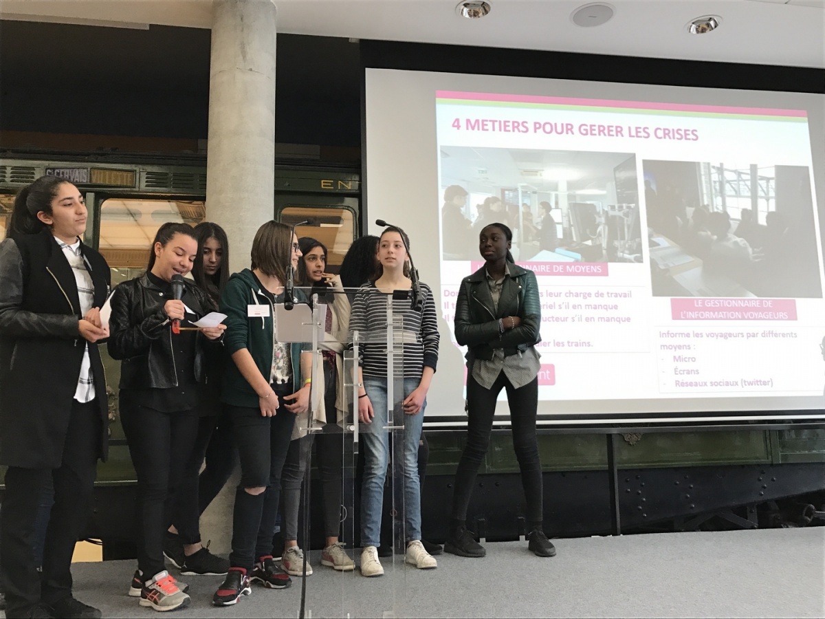 Dans la salle de crise, les collégiennes de l'établissement Elsa Triolet à Saint-Denis (93) a d'abord écouté les explications du fonctionnement des Circulations Ferroviaires. Que se passe-t-il en cas d'incidents ? Puis, elles ont découvert les métiers GTI (Gestionnaire Transports et Informations), qui consistent à gérer l'utilisation des moyens, réguler, mais aussi informer les voyageurs en cas d'incidents. Puis, en 3 groupes, elles ont visité la salle opérationnelle ouverte 24/24 et 7j/7 avec l'explication des différents métiers face aux multiples écrans.
