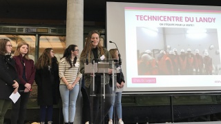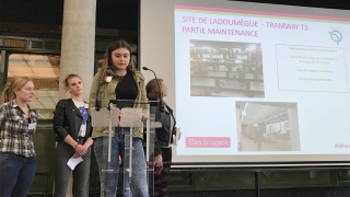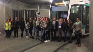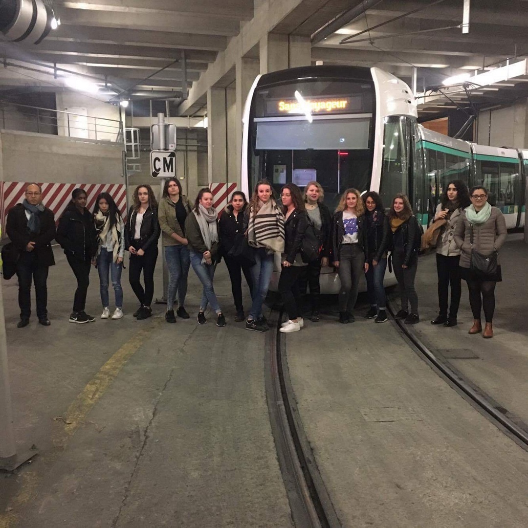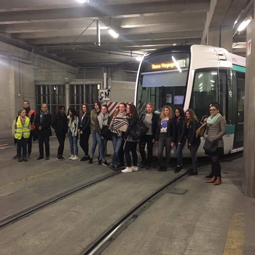 Accompagnées par Hélène Sandier et Emilie Thomas, deux marraines Elles Bougent, les élèves du Lycée René Descartes à Champs sur Marne (77) ont visité le chantier du site Ladoumègue. Le centre de commandement du T3b est une véritable petite tour de contrôle, car c'est ici que toutes les observations et contrôles aux abords des arrêts de la ligne sont effectués. C'est également l'endroit où de possibles incidents sont pris en charge. Enfin, les jeunes filles ont pu comprendre les conditions de maintenance d'un tramway. La fin de la visite a eu lieu sur le toit, couvert de panneaux solaires, et qui accueillera bientôt des ruches d'abeilles. Preuve que l'industrie et l'écologie peuvent aller de pair.