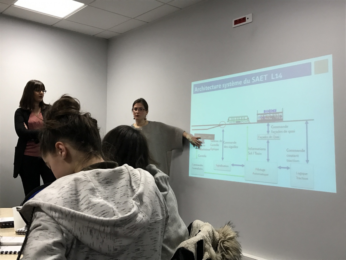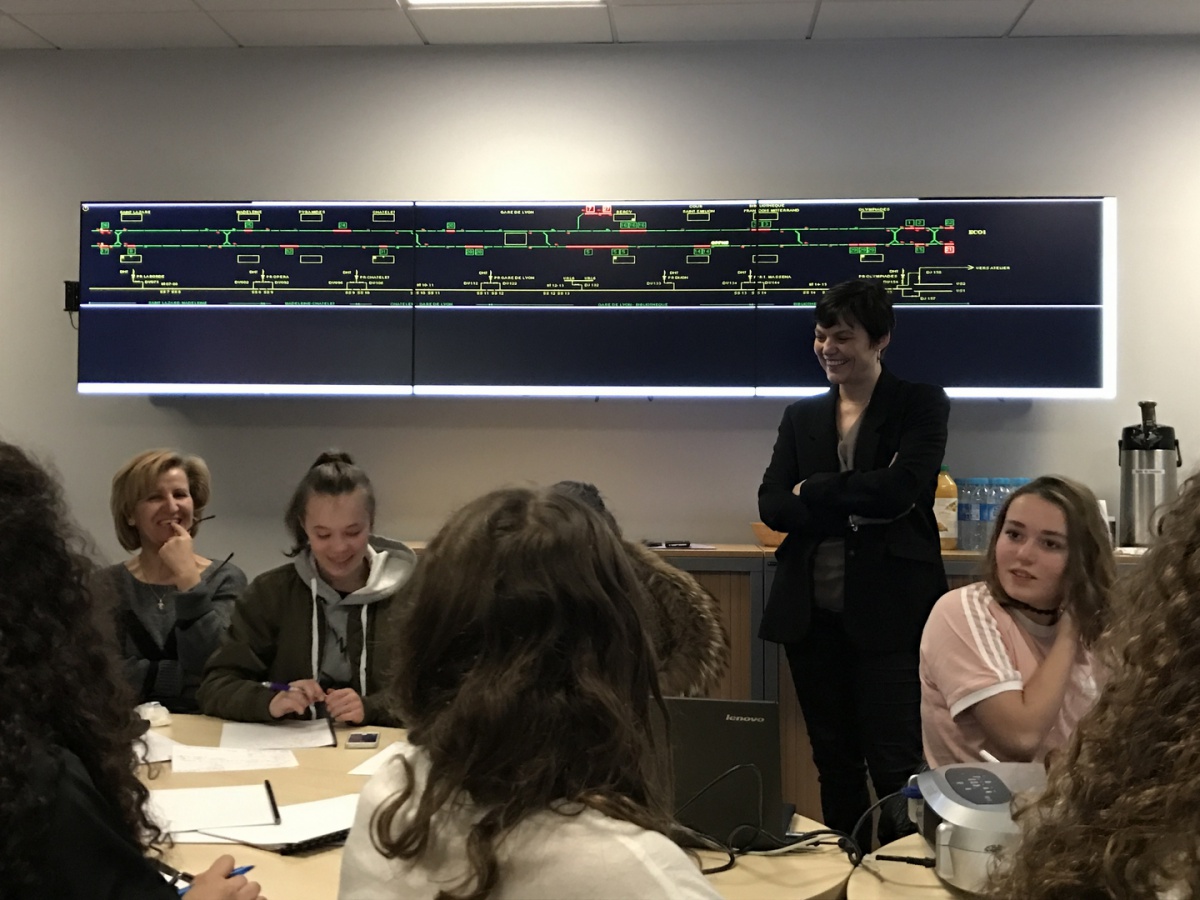 Directrice de la Ligne 14, Mireille Majerczyk a présenté le Groupe RATP ainsi que l'historique de la 14, première ligne automatique de grande capacité du réseau et la seule à proposer un intervalle de 85 secondes entre 2 trains, le matin, en heure de pointe. Les élèves de la cité scolaire du Corbusier, à Poissy (78), ont ainsi pu apprendre comment les agents de la RATP surveillent et pilotent en temps réel l'ensemble des rames, qui circulent en simultané entre la gare de Paris Saint-Lazare et Olympiades. Claire, responsable de la maintenance et marraine Elles Bougent, a pris le relai en accompagnant les jeunes filles au poste de signalisation de la Gare de Lyon. Au cours de son intervention, cette ingénieure de formation a elle aussi insisté qu'il ne fallait pas avoir peur d'être une femme, même dans les métiers techniques.
