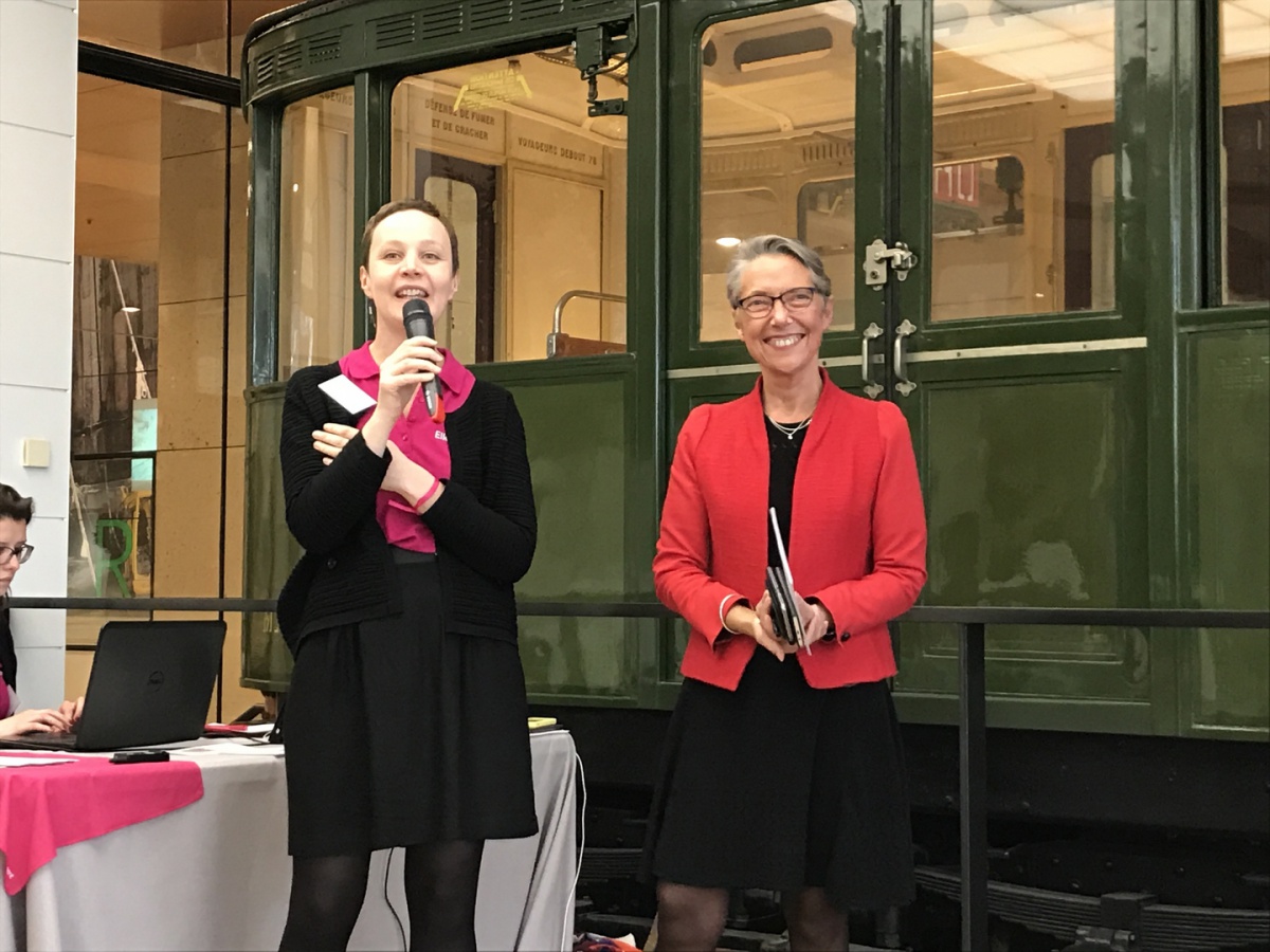 « J'espère que cette journée vous aura permis de vous projeter vers les métiers du ferroviaire et des transports publics », a déclaré Elisabeth Borne devant l'assemblée, constituée de100 lycéennes, collégiennes et étudiantes de la région Ile-de-France.