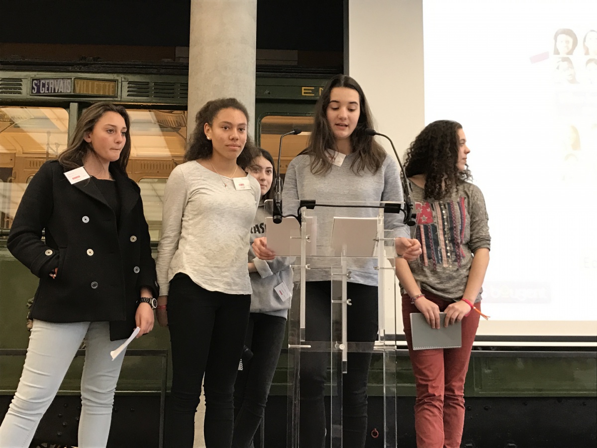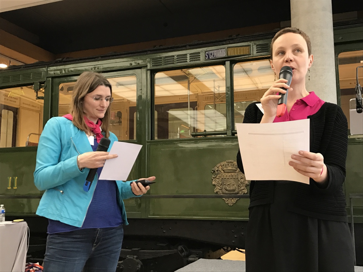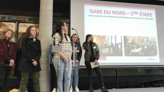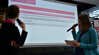 Tour à tour, les 7 équipes se sont succédées sur la scène de la Maison de la RATP pour restituer leur visite de la matinée, sous la forme d'un carnet de voyage. Certaines étaient très à l'aise dans leur prise de parole, et d'autres assez impressionnées par l'exercice. Mais toutes ont relevé le défi.