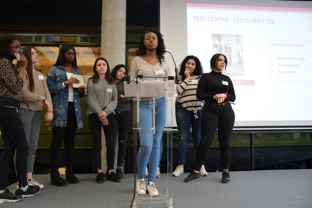 La matinée a permis aux lycéennes de l'établissement Edgar Quinet à Paris (75) de découvrir comment s'effectuent les tests d'ouverture des portes de tramway, le simulateur de conduite 3D qui forme les conducteurs de tram et un nouveau système de toilettes à eau claire « comme à la maison ». Les développeurs du simulateur ont ensuite expliqué aux élèves les différentes étapes de conception du simulateur, principalement la modélisation, ainsi que la mise en interaction des éléments 3D.