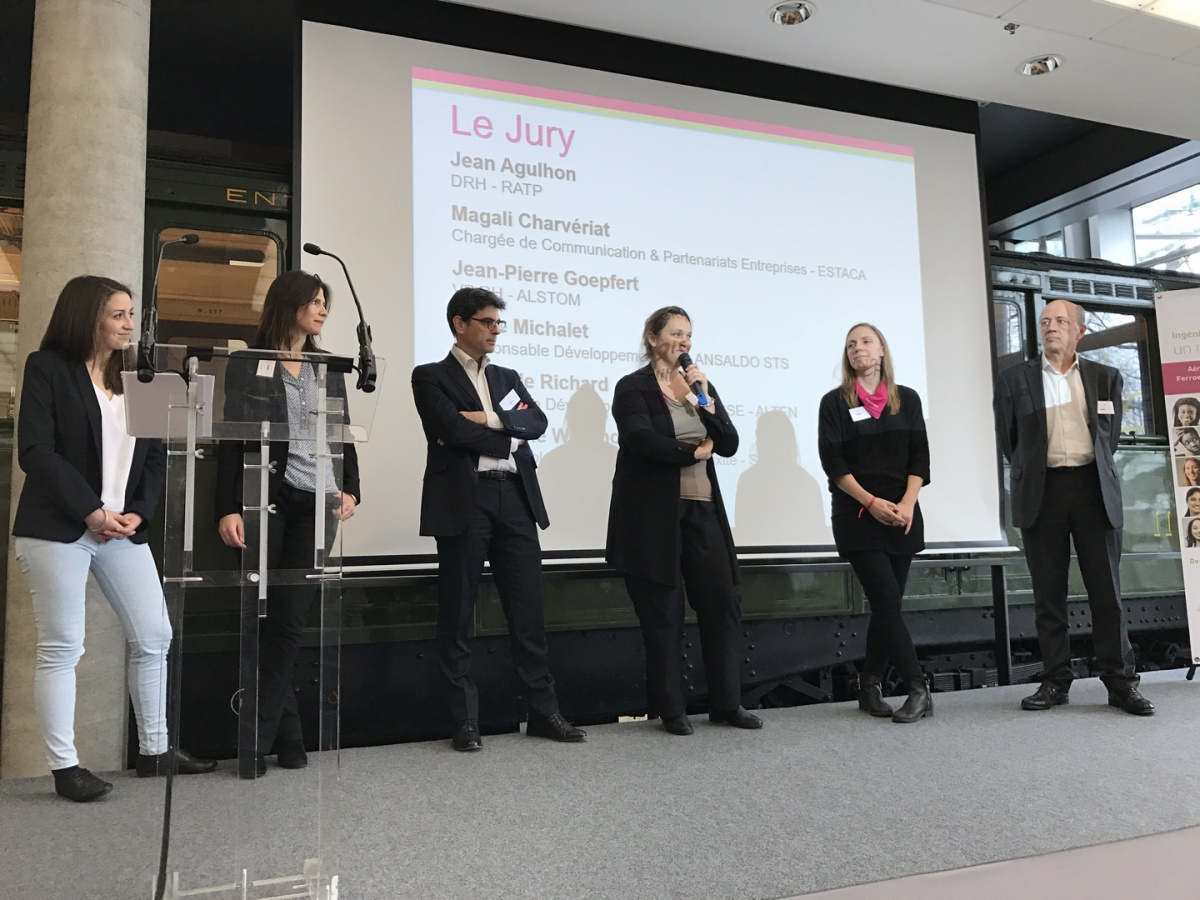 Le jury, composé de Catherine Woronoff-Argaud, Responsable Politiques Diversité et Mixité à la SNCF, Jean Agulhon, DRH de la RATP, Jean-Pierre Goepfert, VP RH France d'Alstom, Laure Michalet, Responsable Développement RH d'Ansaldo STS, Magali Charvériat, Chargée de communication et partenariats entreprises de l'ESTACA, et Mathilde Richard, Chargée de Développement Durable / RSE d'Alten, a longuement délibéré, tant les présentations étaient de bonne qualité.