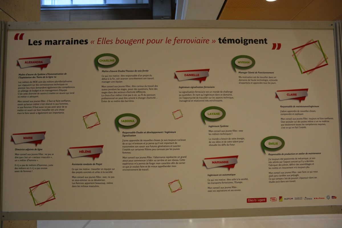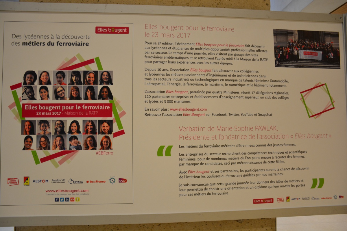 Alstom, Ansaldo STS, la RATP et la SNCF, quatre entreprises partenaires de l'association Elles Bougent et leurs marraines, ont donné rendez-vous à 100 lycéennes, collégiennes et étudiantes de la région Ile-de-France pour leur partager leur expérience dans les métiers techniques et scientifiques du secteur du ferroviaire.