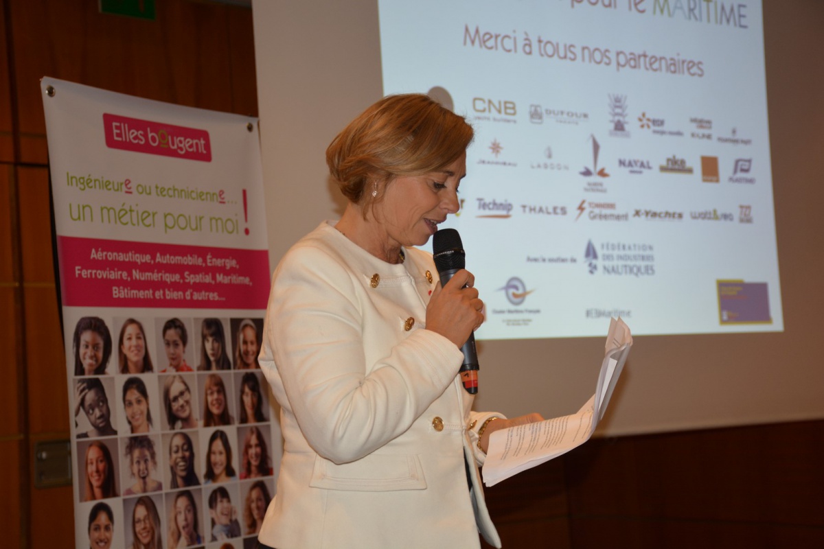 15h50 : Après un mot d'introduction de Marie-Sophie Pawlak, présidente et fondatrice d'Elles Bougent, de Frédéric Moncany de Saint-Aignan, président du Cluster Maritime Français, et de Thomas Du Payrat d'Odyssée Développement, la vice-amiral Cullerre, femme la plus haut gradée de la Marine Nationale, prend la parole pour partager avec humour et passion son parcours d'exception.