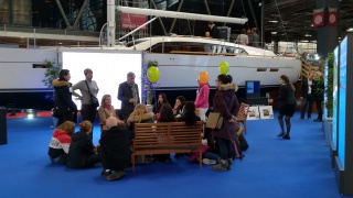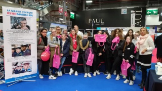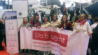 13h : Elles Bougent pour le Maritime, c'est parti ! Les groupes "Océan Atlantique", "Océan Pacifique", "Mer Adriatique", "Océan Austral", "Océan Arctique", "Mer Méditerranée", "Mer Baltique", "Océan Indien" et "Mer des Antilles" sont dans les startings blocks. Les sacs roses Elles Bougent ne passent pas inaperçus dans les allées du Nautic.