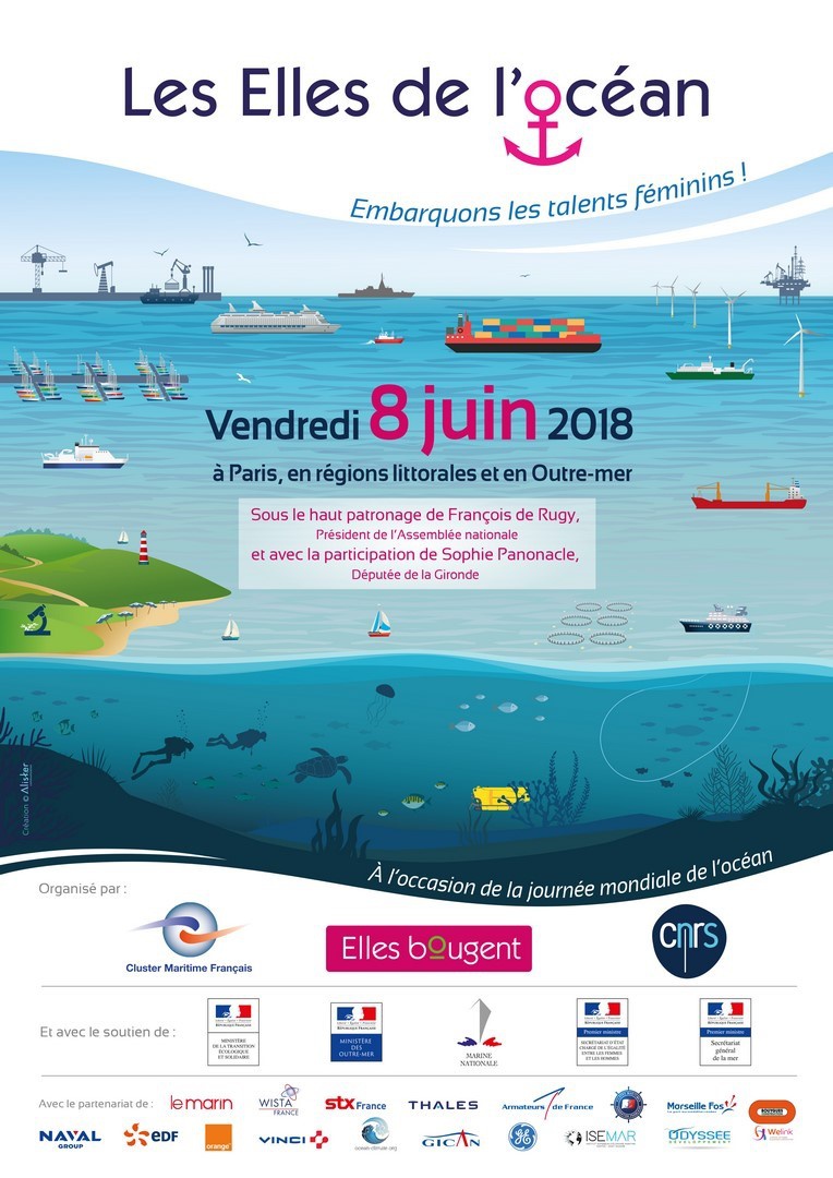 *Les « Elles de l'Océan » est une journée dédiée à la diversité des métiers du maritime, organisée le 8 juin 2018, à l'occasion de la Journée mondiale de l'Océan. Elle a été l'occasion de faire découvrir ces métiers passionnants à de nombreuses jeunes filles. En marge de la grande conférence, qui s'est tenue à l'Assemblée Nationale, à Paris, 350 collégiennes et lycéennes ont visité 17 sites d'entreprise dans les régions littorales et en outre-mer, grâce au soutien de nombreux partenaires.