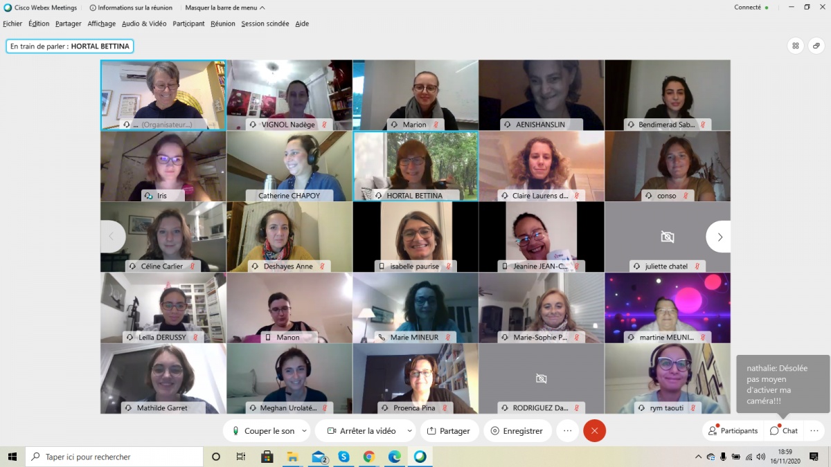Le 16 novembre 2020 ce fut une grande joie de retrouver plus d'une cinquantaine de marraines, en webex (confinement oblige), pour notre happy hour de rentrée.