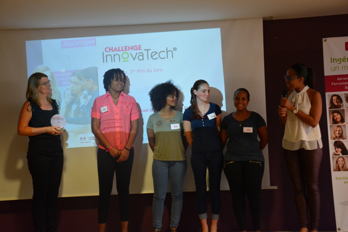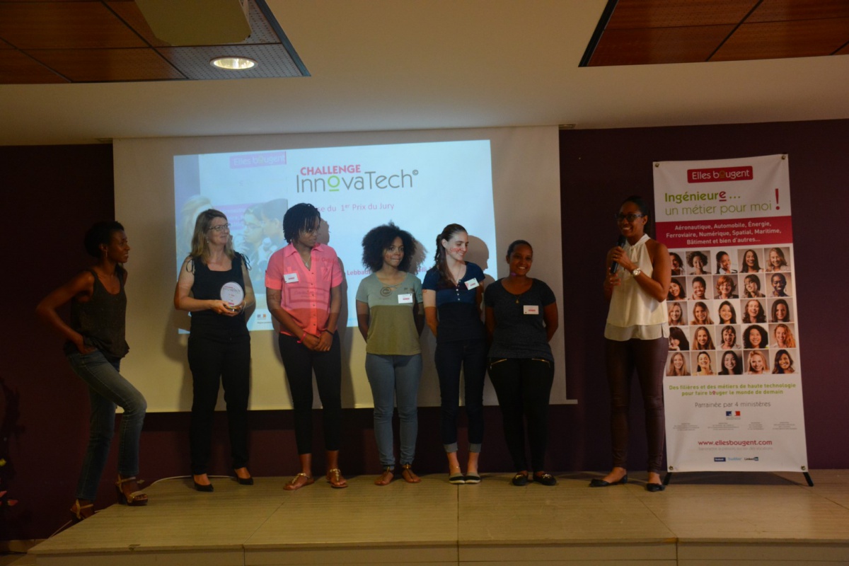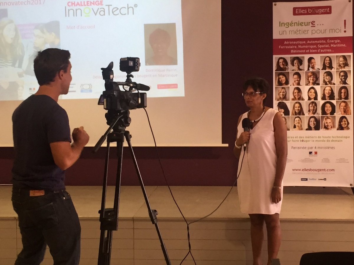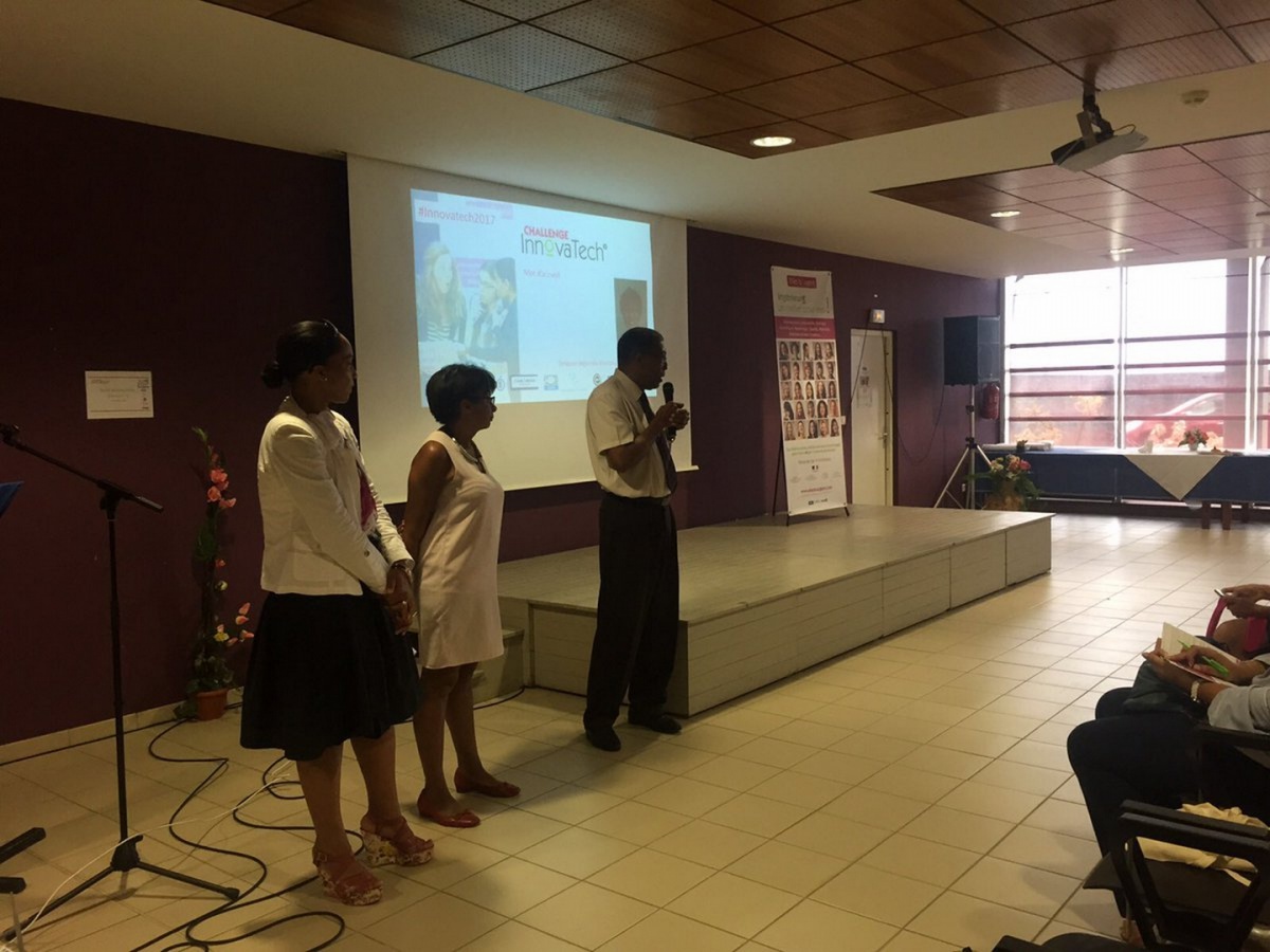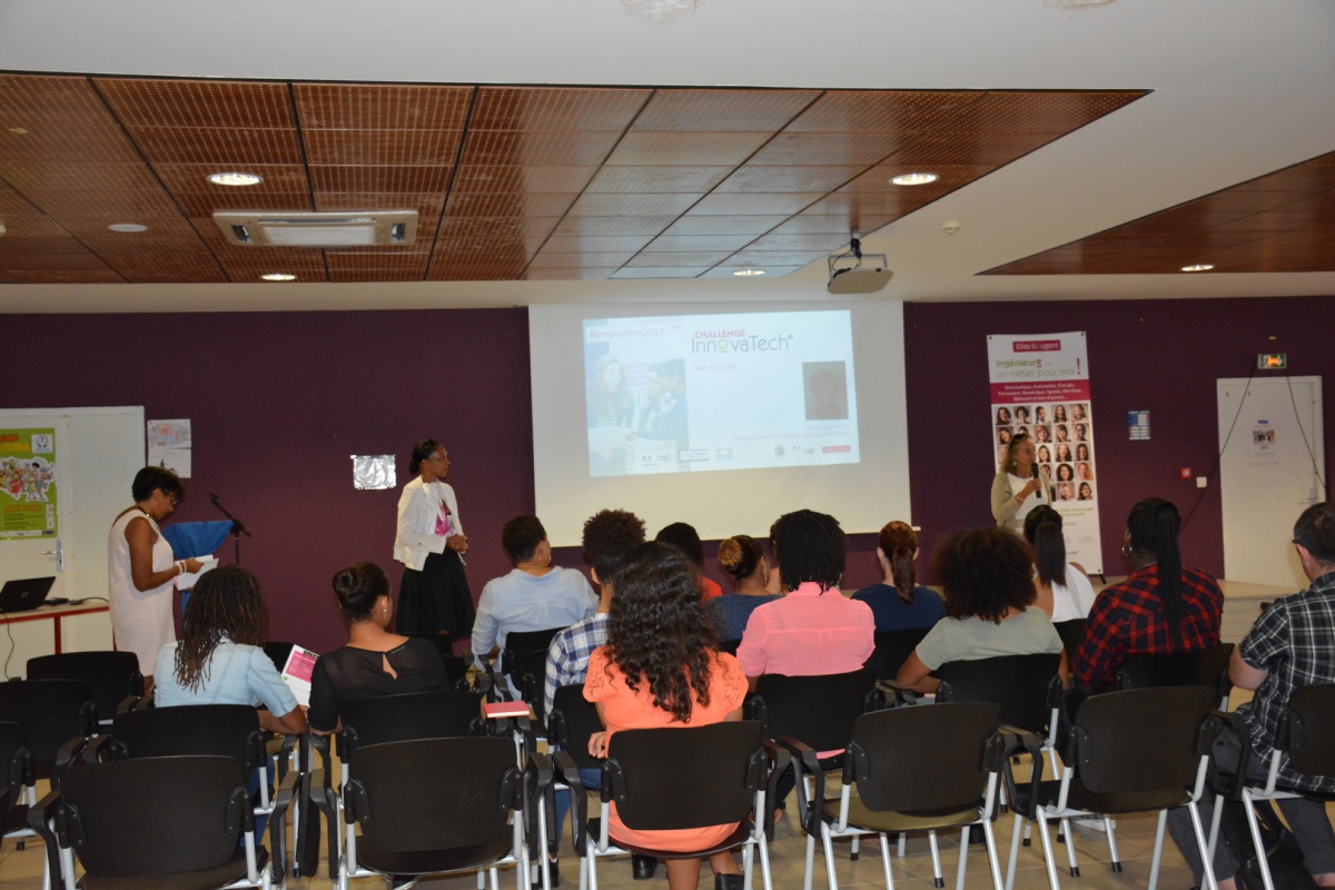Après un mot de la présidente d'Elles Bougent Marie-Sophie Pawlak et de Gérard Baudin, Inspecteur Général de l'Académie de Martinique, Madame Marinette Torpille, conseillère exécutive du développement économique de la CTM (Collectivité Territoriale de Martinique), prend la parole pour féliciter l'initiative originale du Challenge InnovaTech.