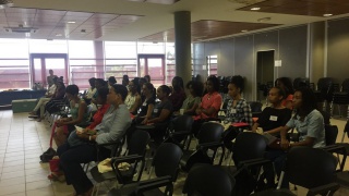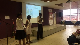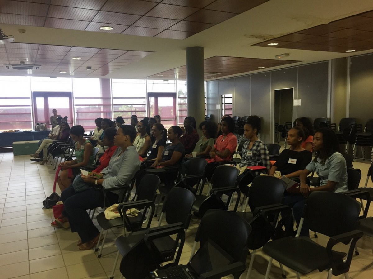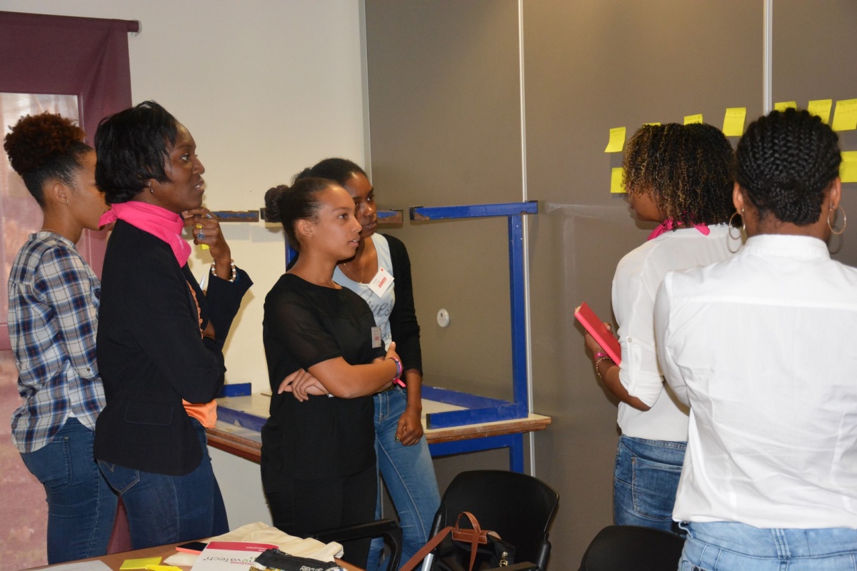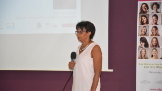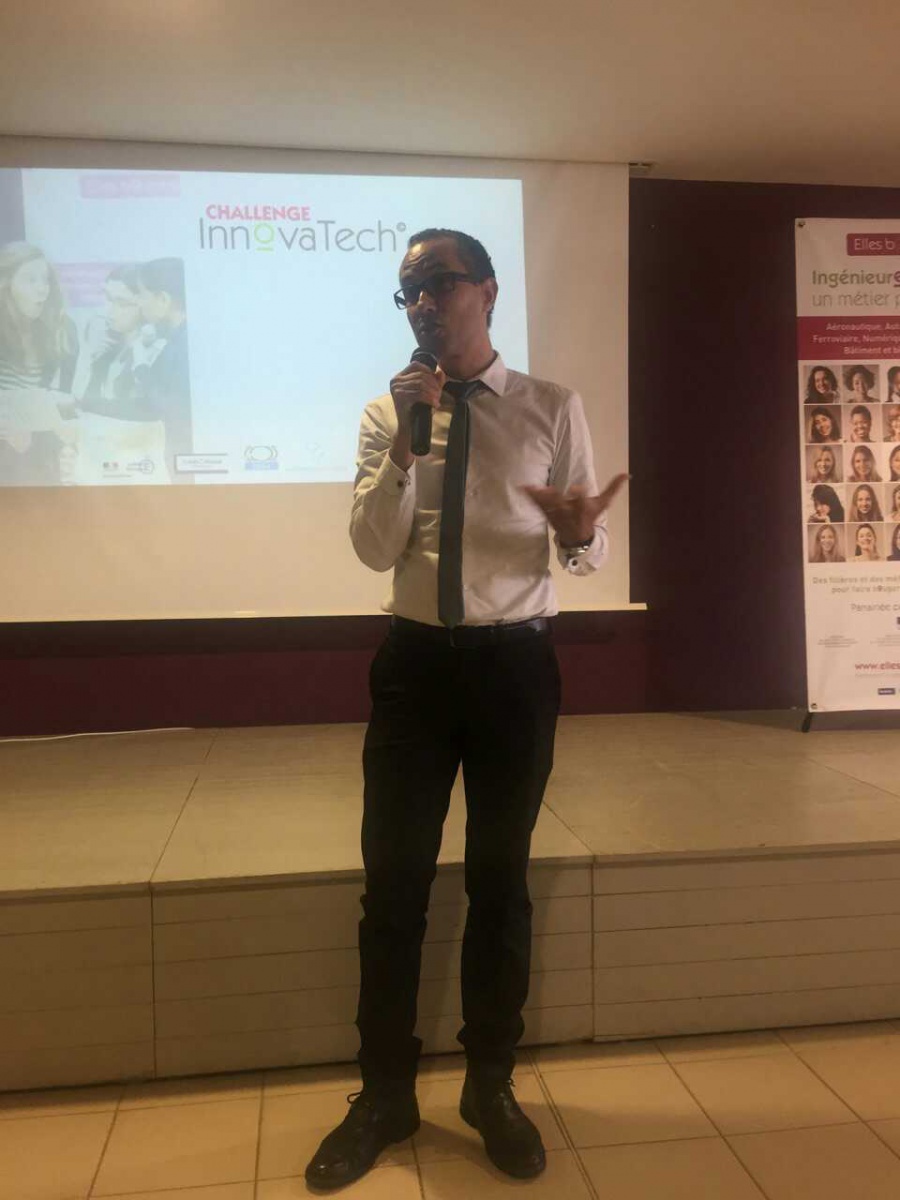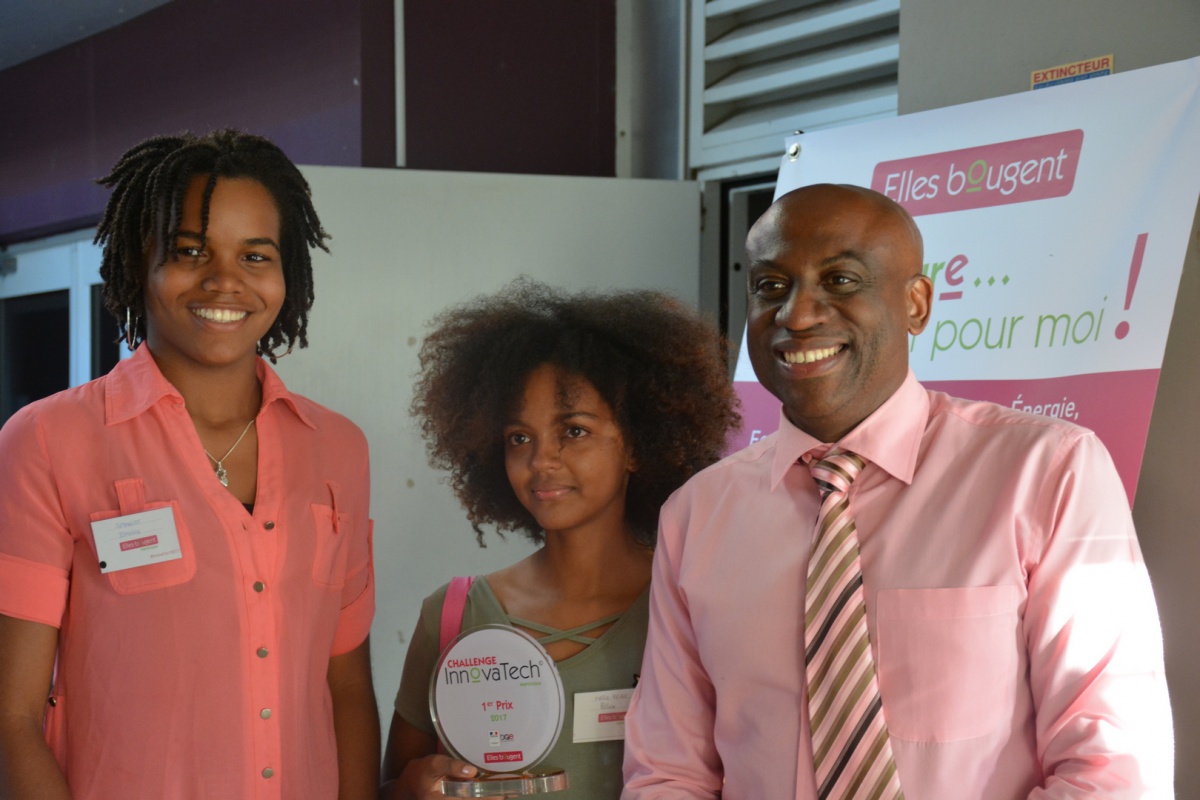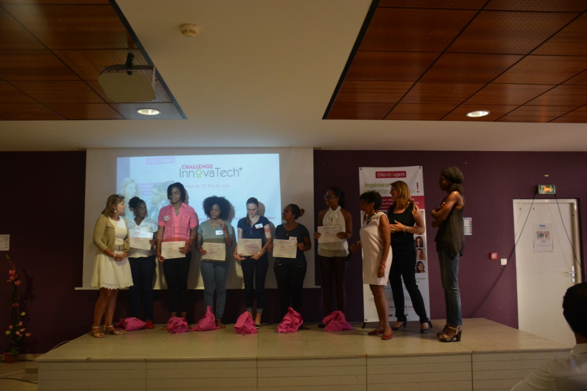 Après un mot de la présidente d'Elles Bougent Marie-Sophie Pawlak et de Gérard Baudin, Inspecteur Général de l'Académie de Martinique, Madame Marinette Torpille, conseillère exécutive du développement économique de la CTM (Collectivité Territoriale de Martinique), prend la parole pour féliciter l'initiative originale du Challenge InnovaTech.
