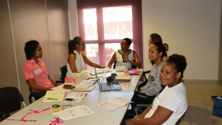 Equipe composée de Gilda, marraine du CHU Fort-de-France, Malou et Najade, étudiantes en prépa au Lycée Ducos, Stéphanie, étudiante en BTS au Lycée Bissol, Héloise et Emeline du Lycée Le François.