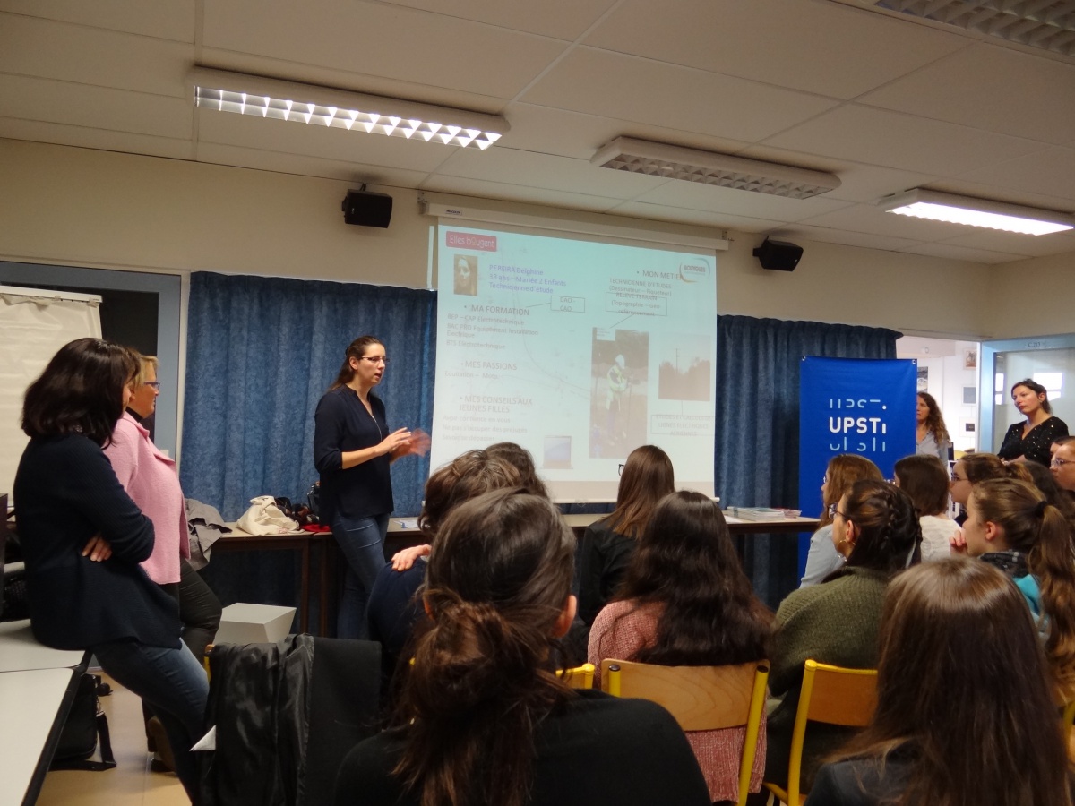 Ceux sont 6 marraines de l'association Elles Bougent des partenaires ALSTOM, UNIVERSITE DE LA ROCHELLE, EIGSI & BOUYGUES ENERGIES qui ont été accueillies par Mme Dréau Kristell et Mme Legait Marie-Héléne, elles ont témoignées de leur parcours, leurs métiers et leurs motivations au quotidien pour exercer des métiers techniques, scientifiques ou d'ingénieur.