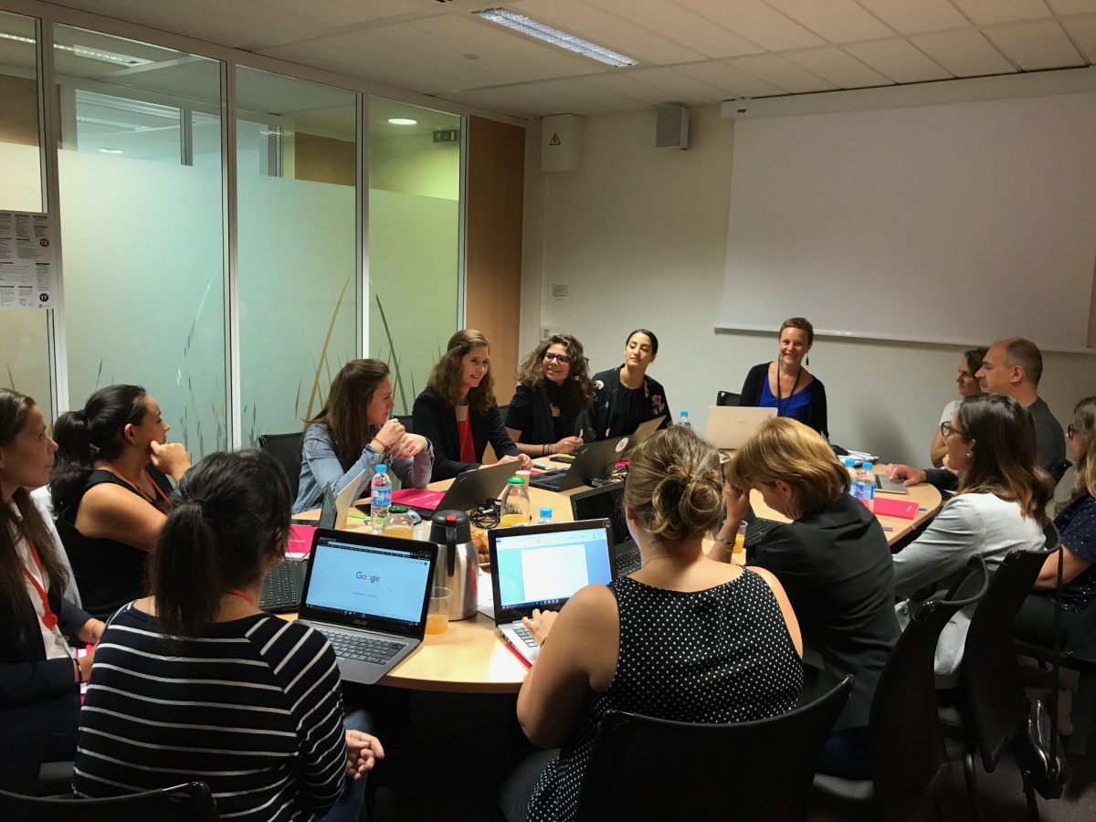 16h15 : De nouveaux réunis autour de la table, les binômes présentent leurs travaux de l'après-midi : infographie sur le thème "comment devenir ingénieure ?", quiz sur les différents métiers et les stéréotypes associés, témoignages vidéo de leur parcours professionnel et de leur métier d'ingénieure au quotidien… Le plein d'idées et de contenus que l'équipe Elles bougent pourra implémenter dans les prochaines semaines sur notre site web.