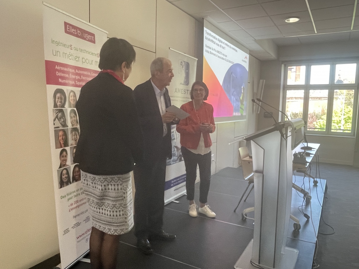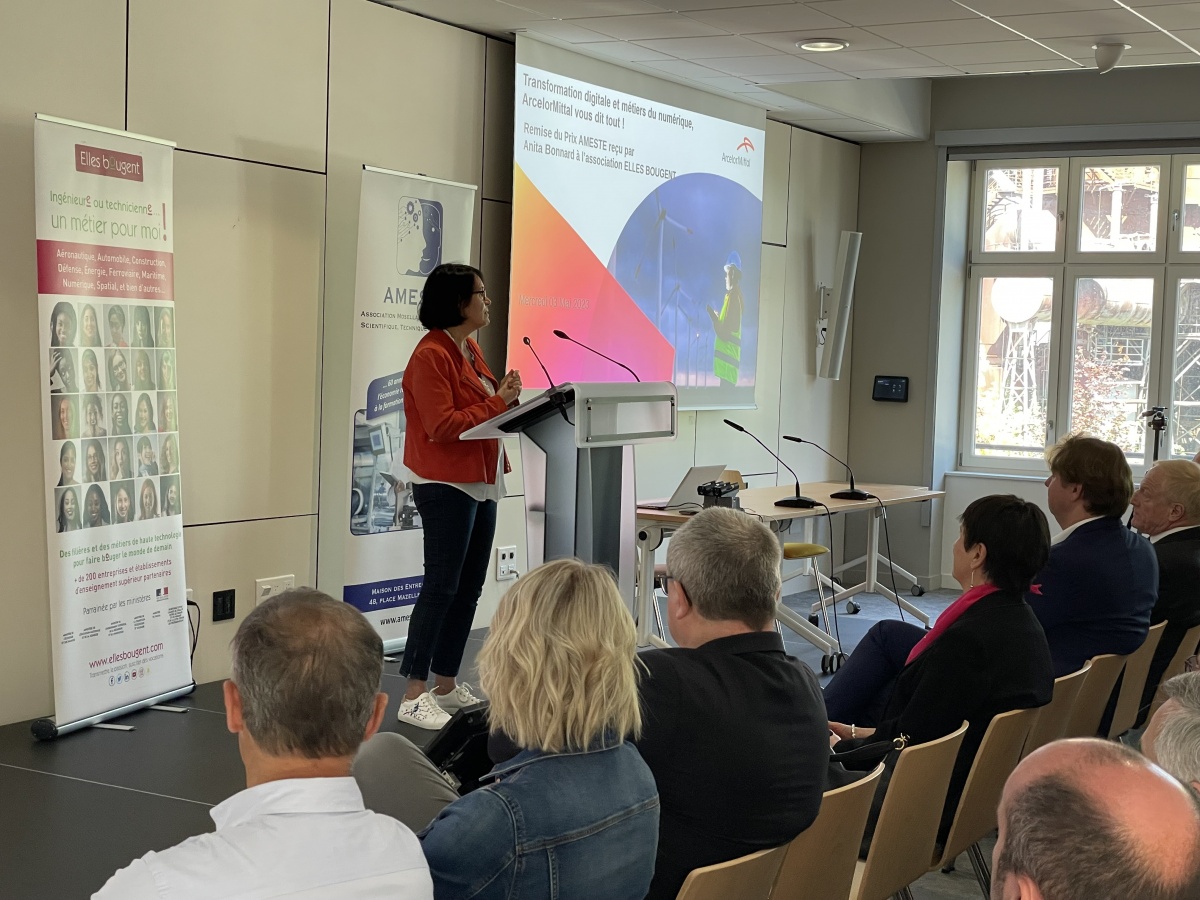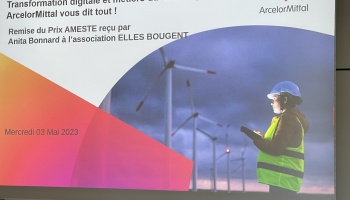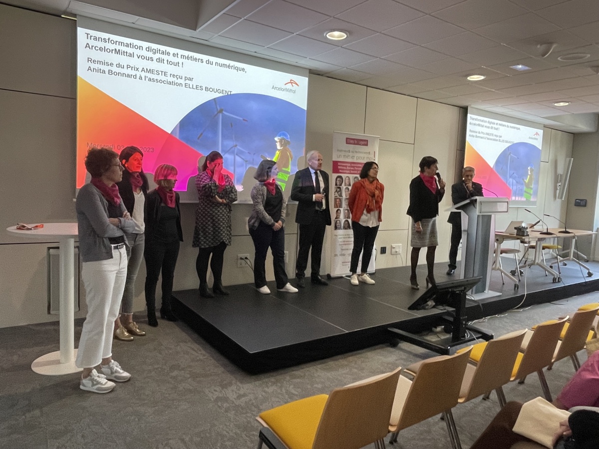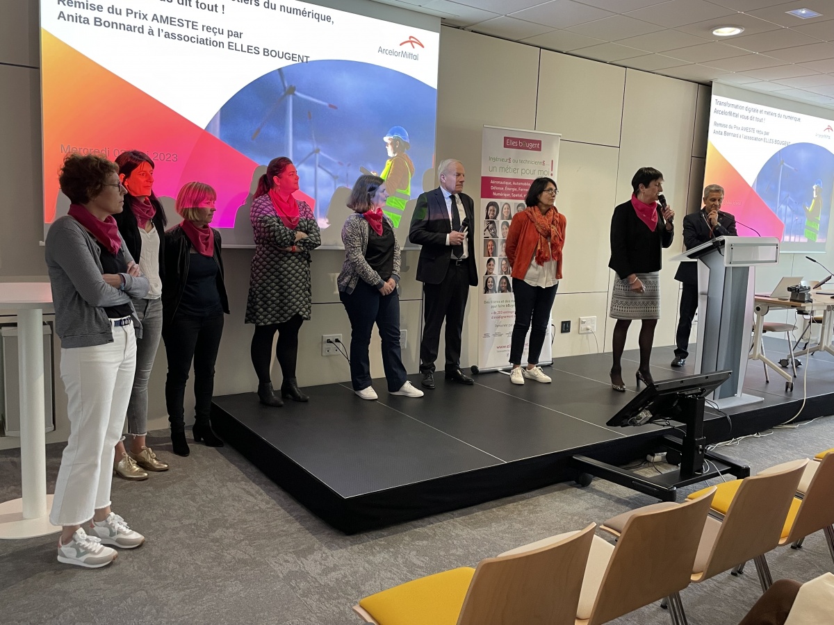 Mercredi 3 mai, avec Agnès Volpi, nous avons eu l'honneur de recevoir au nom de l'association Elles bougent un chèque de 3000€ offert par Anita Bonnard, ex COO Finishing de ArcelorMittal accompagnant le prix 2022 de l'association AMESTE qui lui a été remis pour l'ensemble de ses actions.