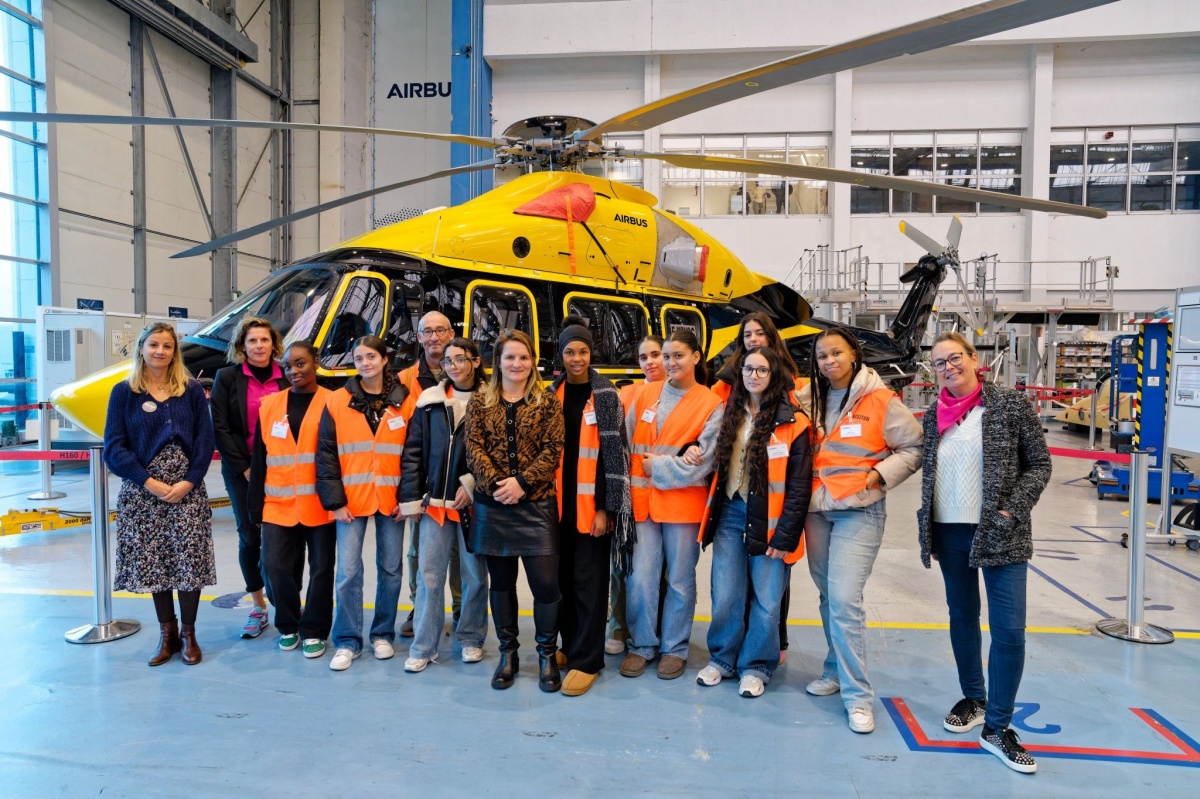 Dans le cadre de la semaine de l'industrie 2024, #Ellesbougent et #AirbusHelicopters se sont associés pour recevoir, sur le site de Marignane, un groupe de jeunes collégiennes & lycéennes curieuses et pleine d'envie. (Tour-Sainte, Marseille Olivier BADY)