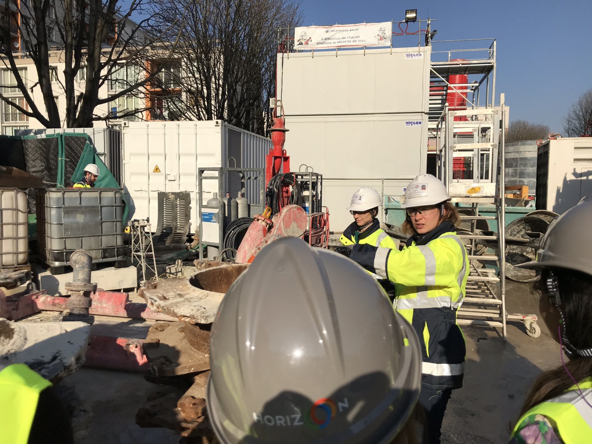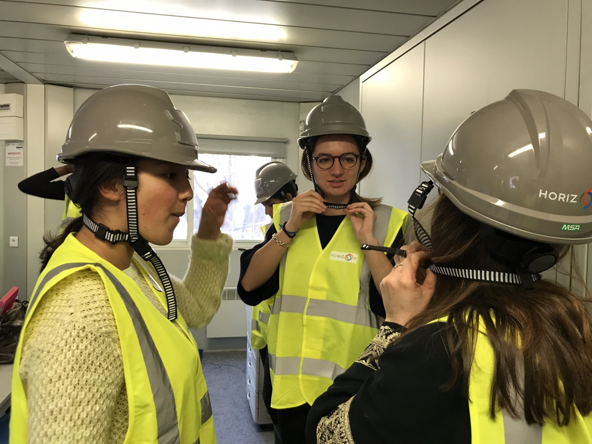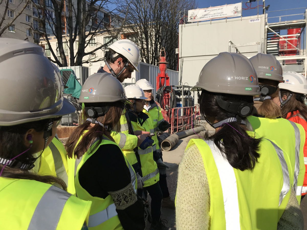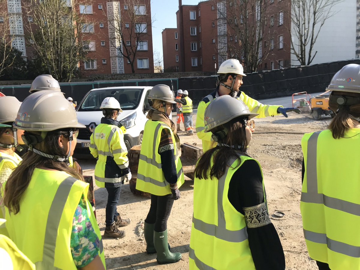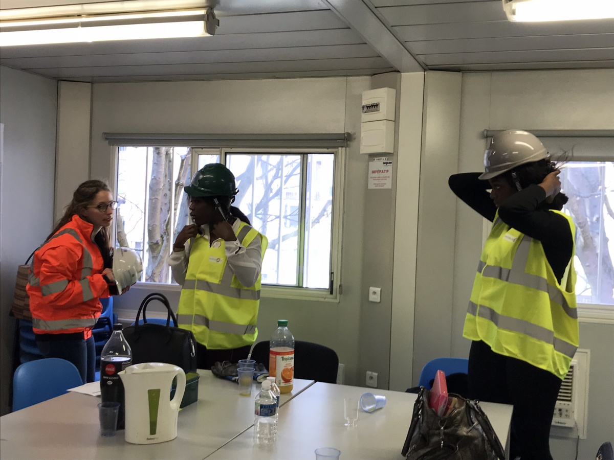 Equipées d'EPI (Equipements de Protection Individuelle), les étudiantes ont eu l'opportunité de visiter le chantier de Vitry-sur-Seine, où elles ont notamment pu voir de leurs propres yeux le matériel présenté auparavant par les marraines.