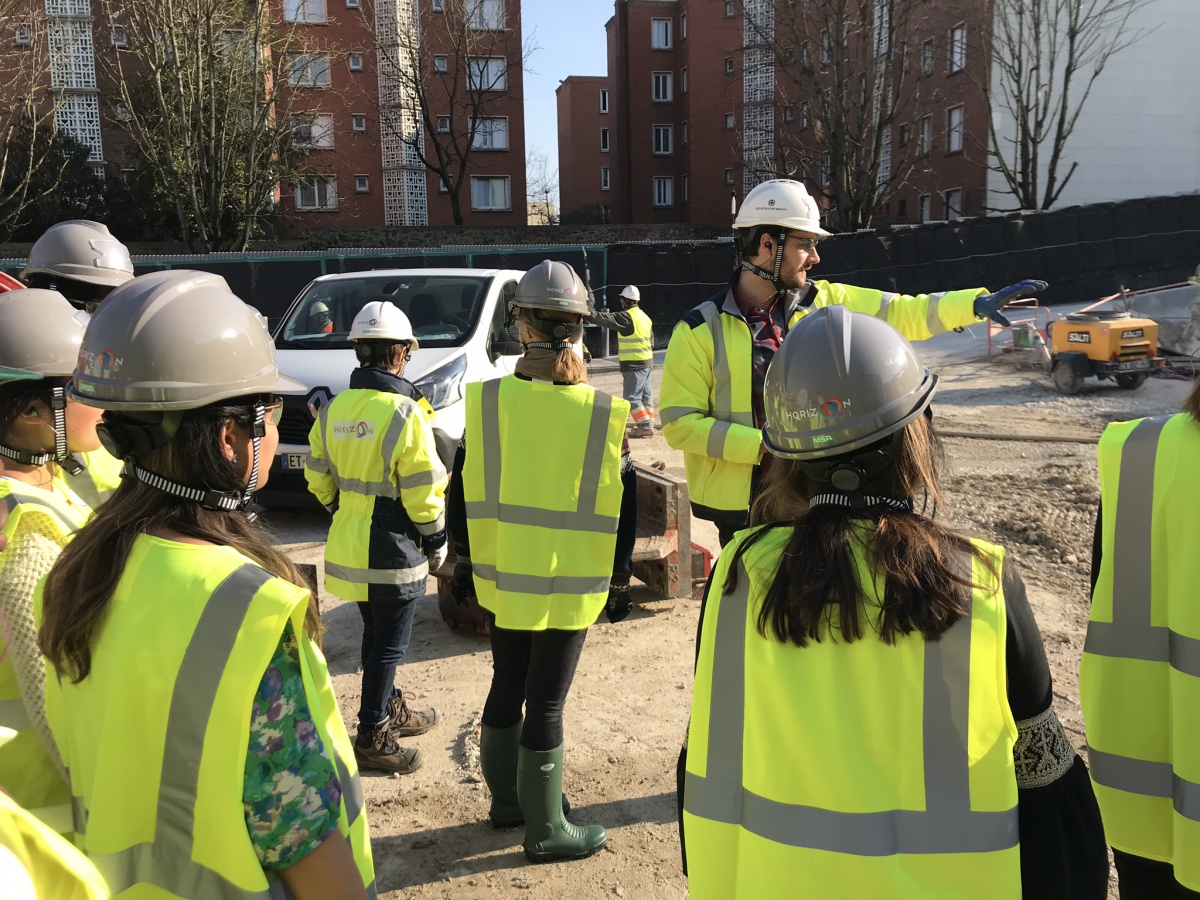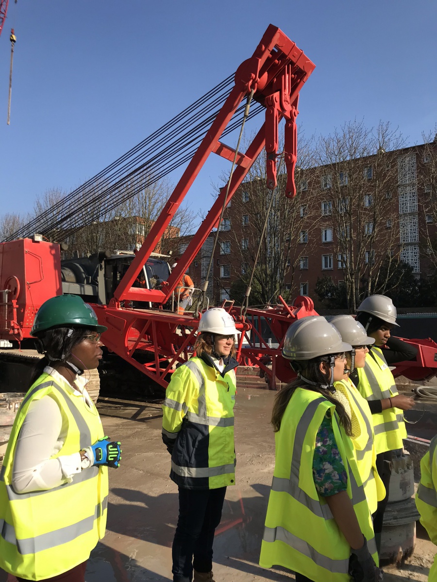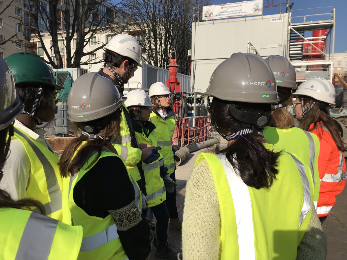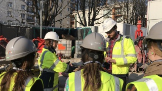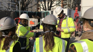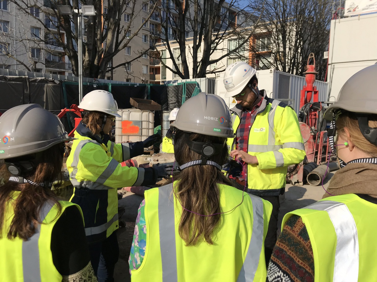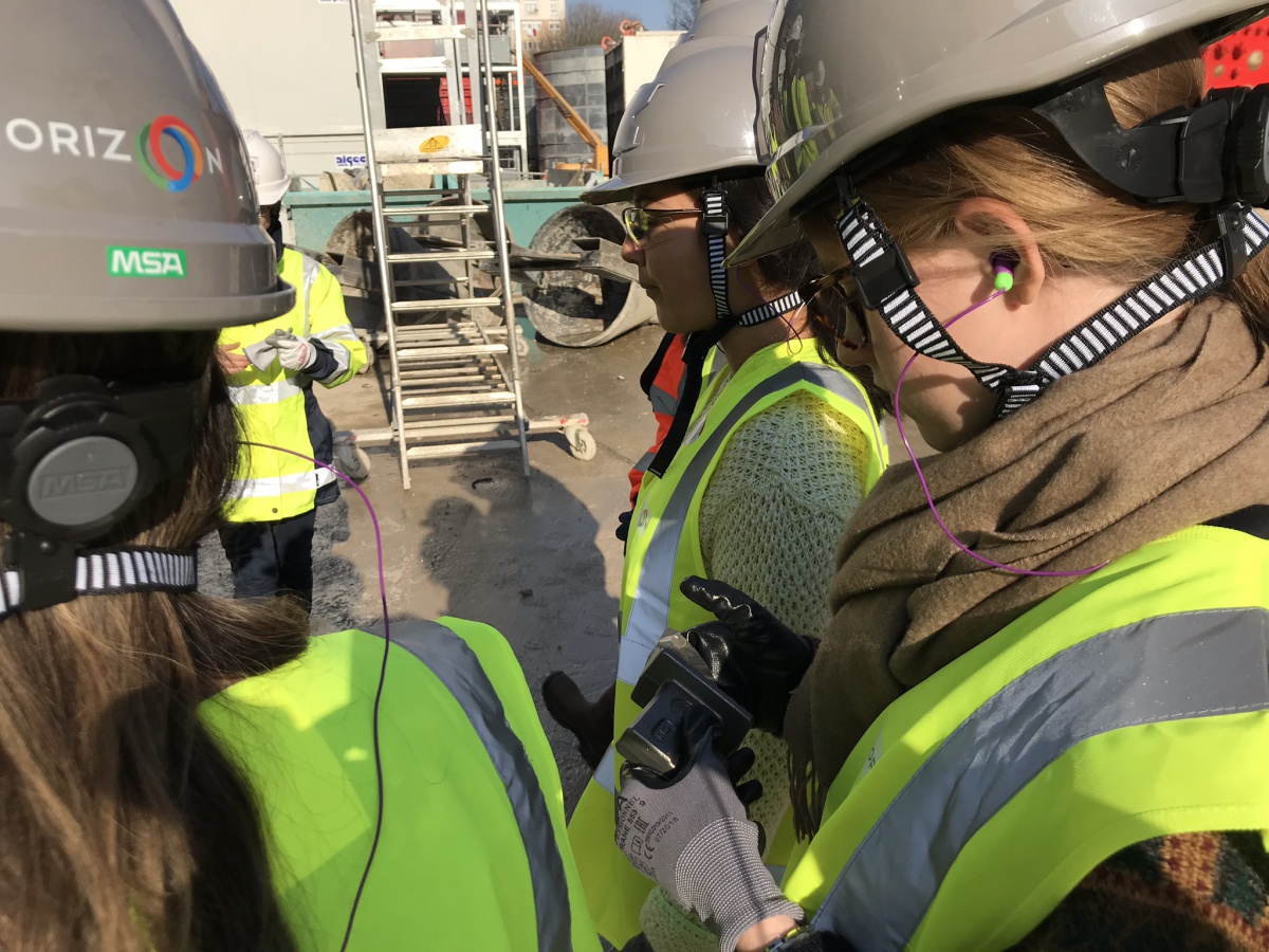 Equipées d'EPI (Equipements de Protection Individuelle), les étudiantes ont eu l'opportunité de visiter le chantier de Vitry-sur-Seine, où elles ont notamment pu voir de leurs propres yeux le matériel présenté auparavant par les marraines.