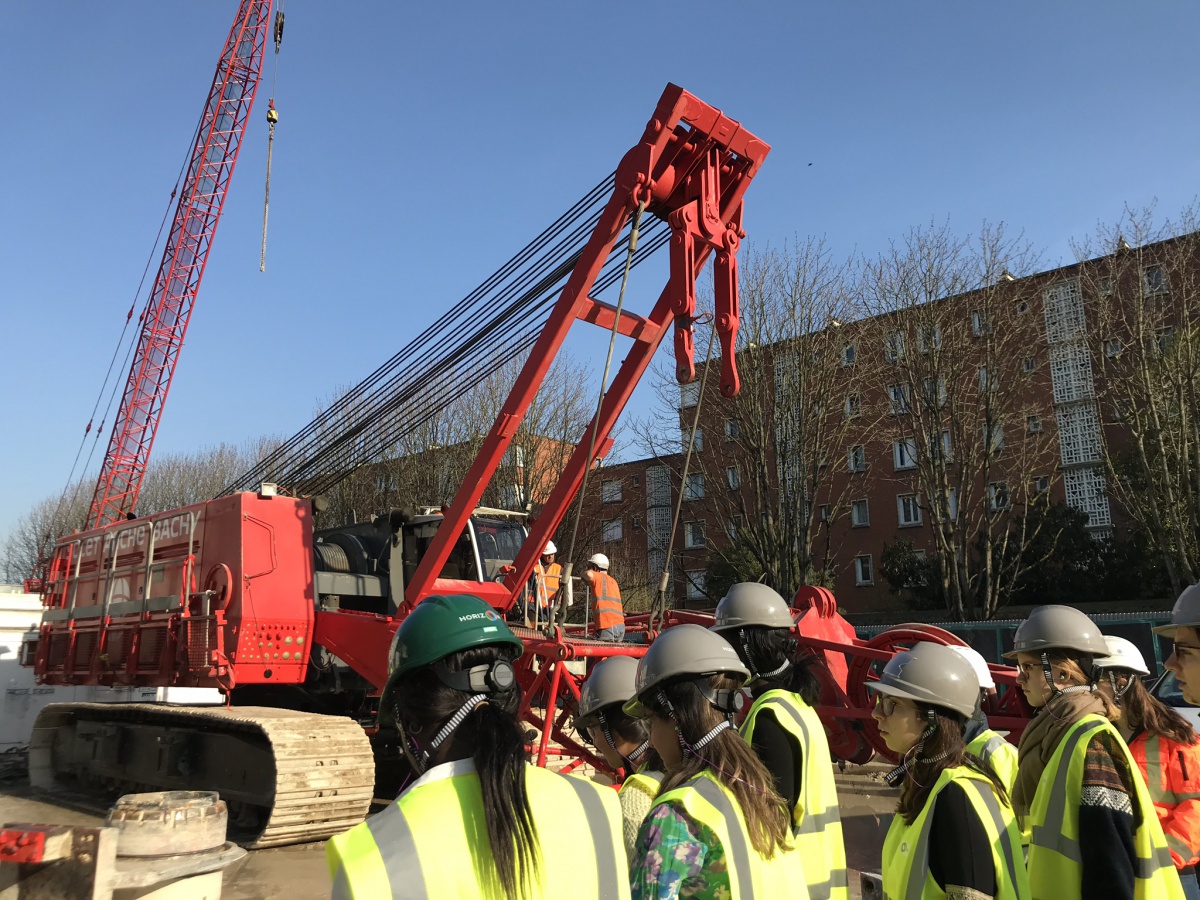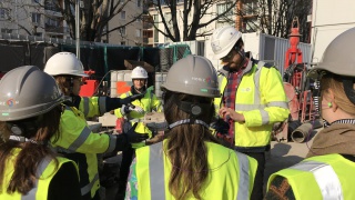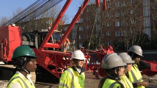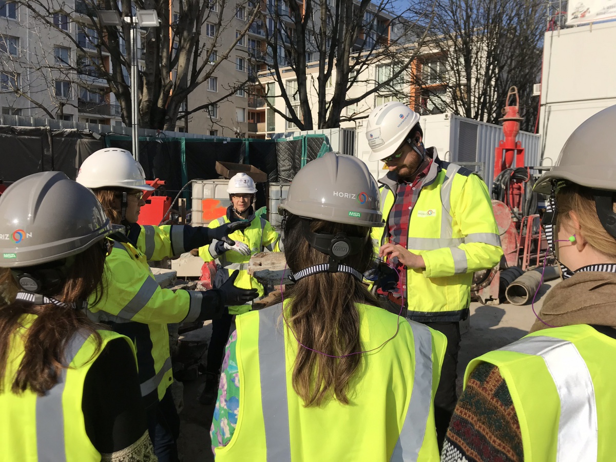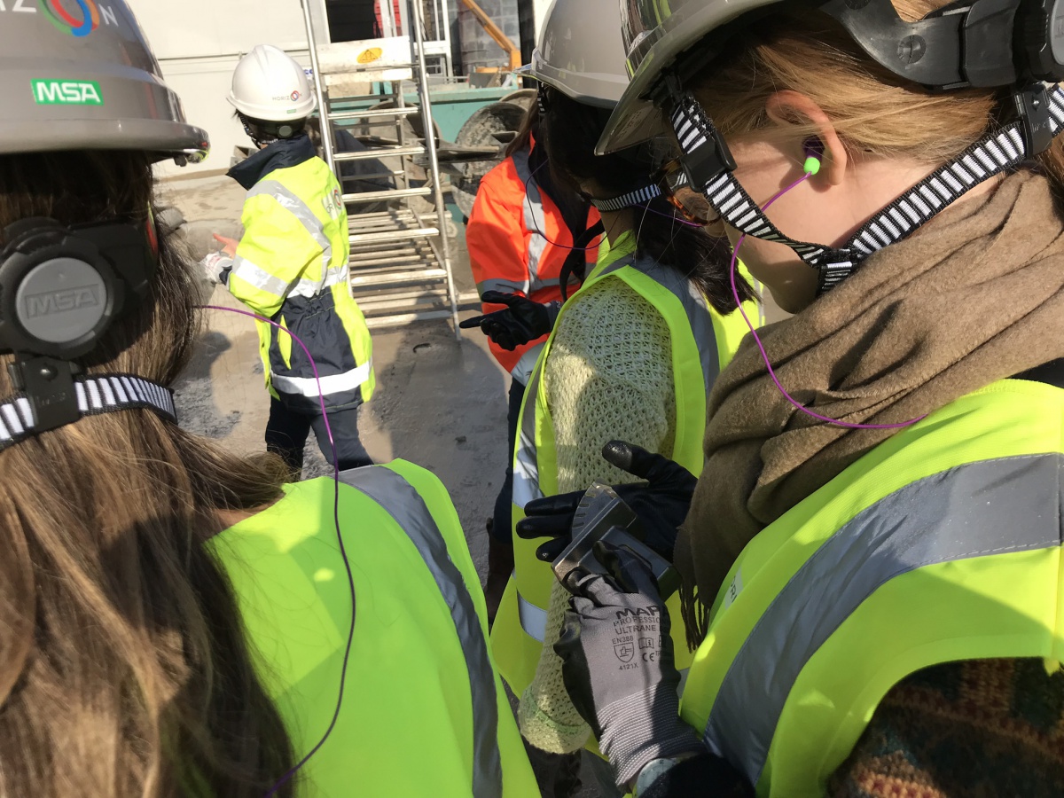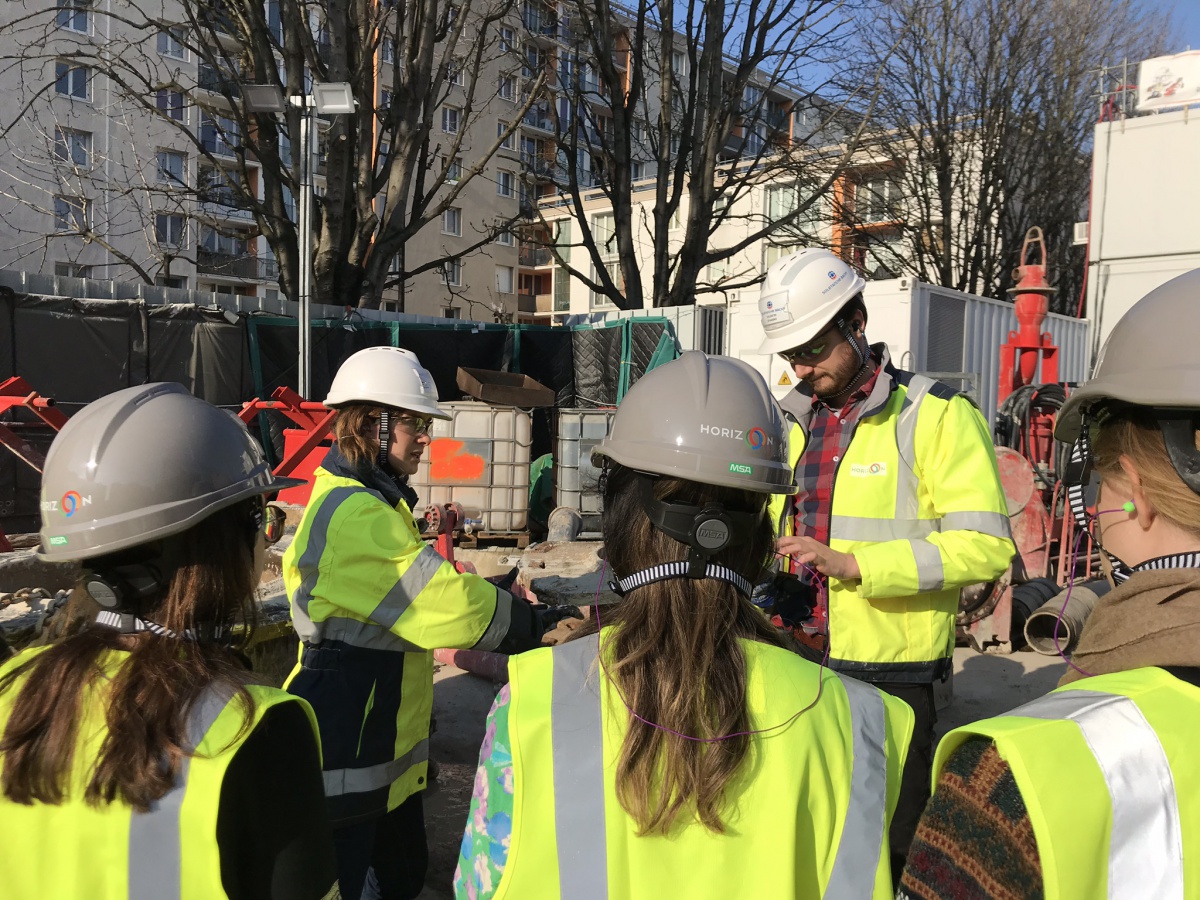 Equipées d'EPI (Equipements de Protection Individuelle), les étudiantes ont eu l'opportunité de visiter le chantier de Vitry-sur-Seine, où elles ont notamment pu voir de leurs propres yeux le matériel présenté auparavant par les marraines.