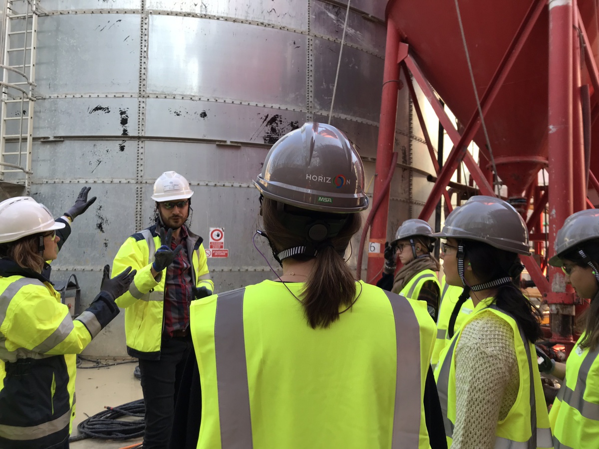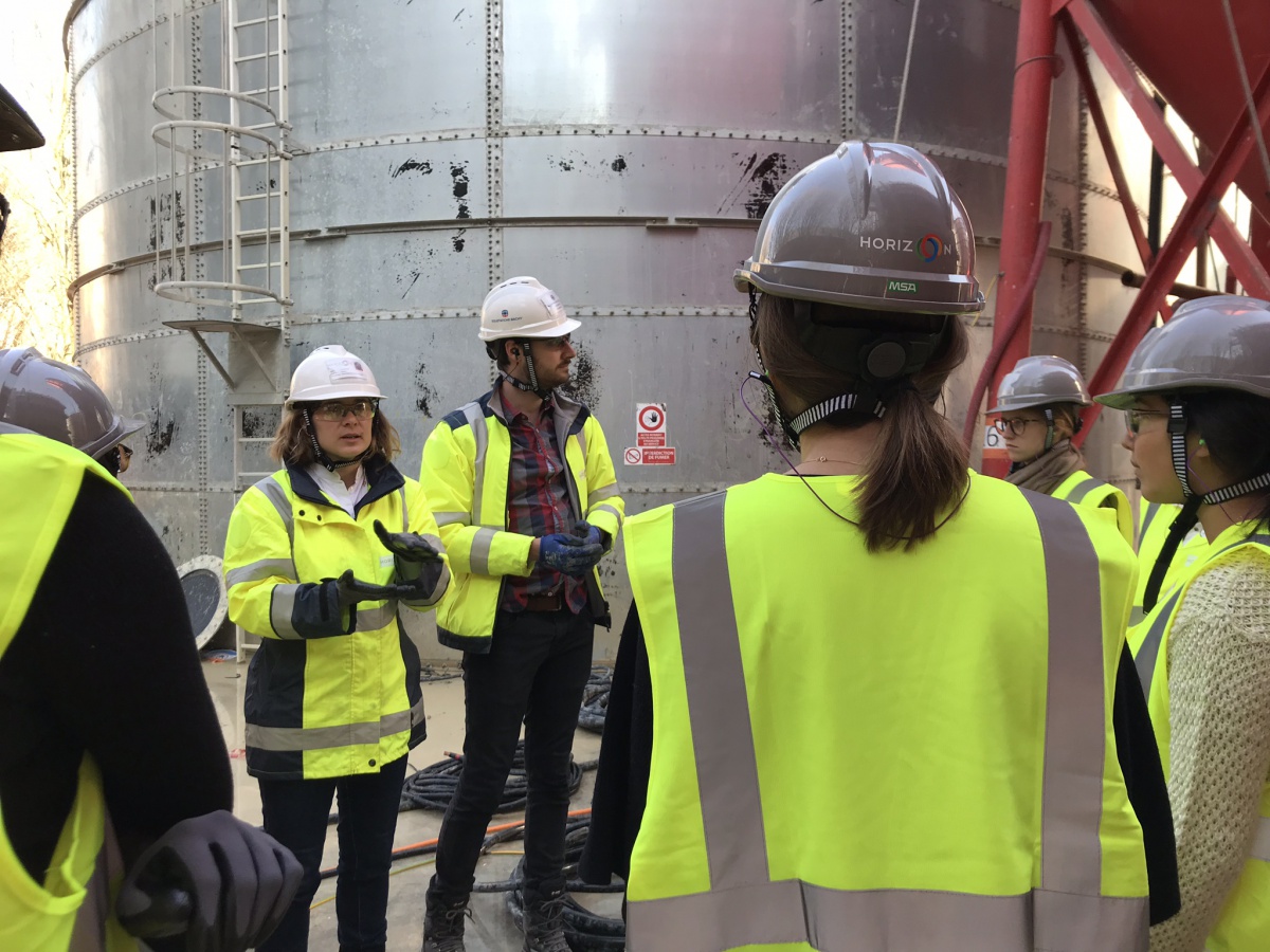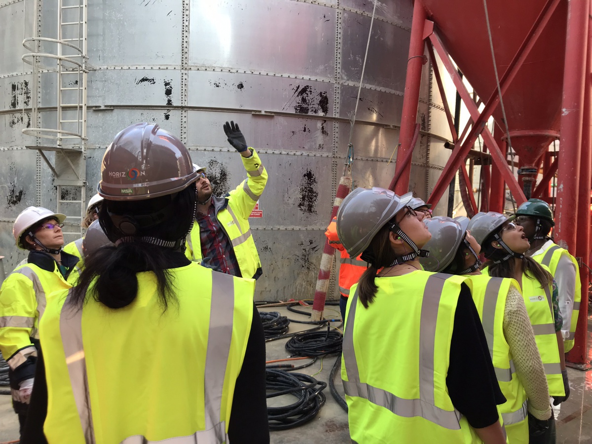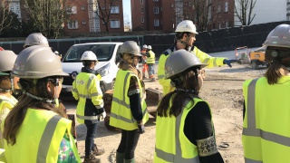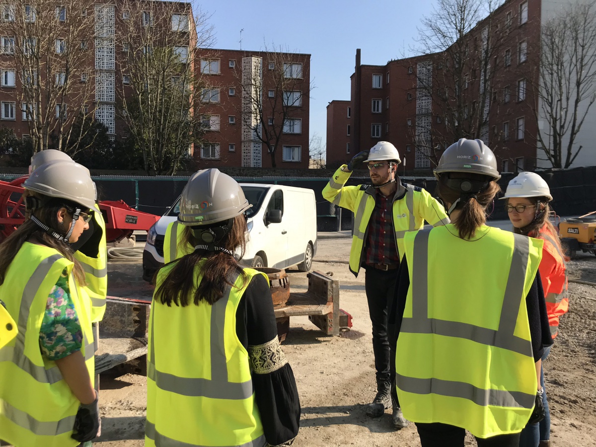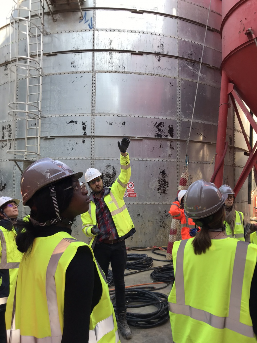 Equipées d'EPI (Equipements de Protection Individuelle), les étudiantes ont eu l'opportunité de visiter le chantier de Vitry-sur-Seine, où elles ont notamment pu voir de leurs propres yeux le matériel présenté auparavant par les marraines.