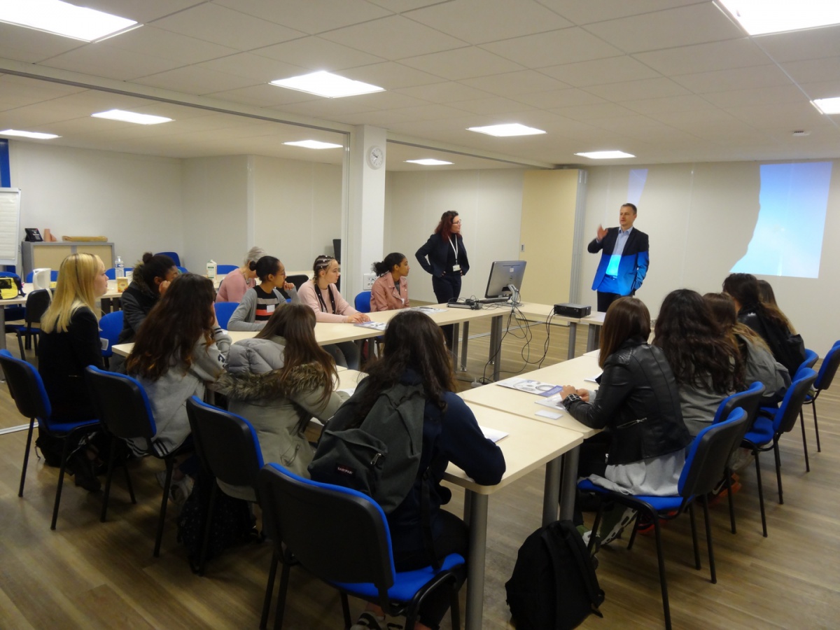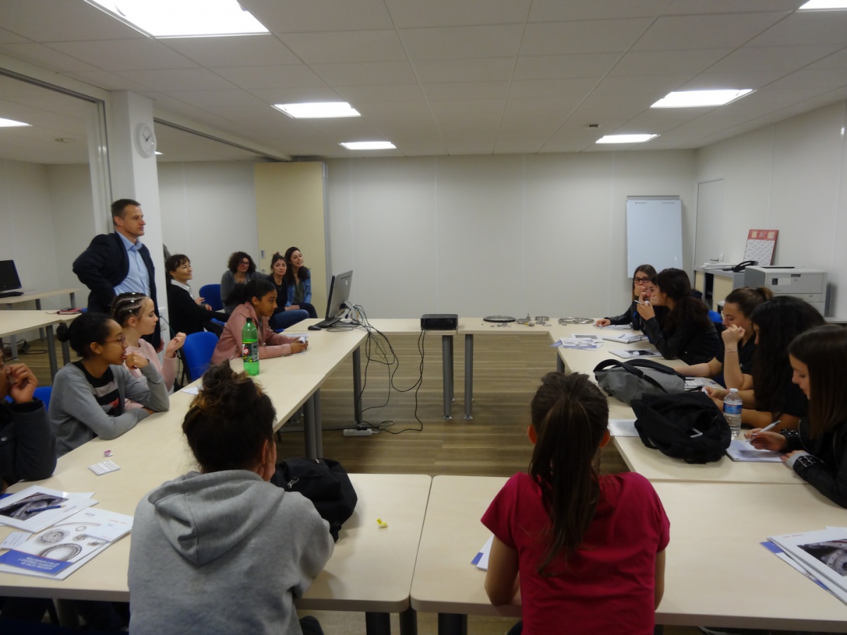 Les douze gagnantes du challenge FIM/DGE/Elles Bougent du collège René Barthélémy ont été accueillies par la société ADR Applications des Roulements, le mardi 21 mars 2017, à Thomery (77).