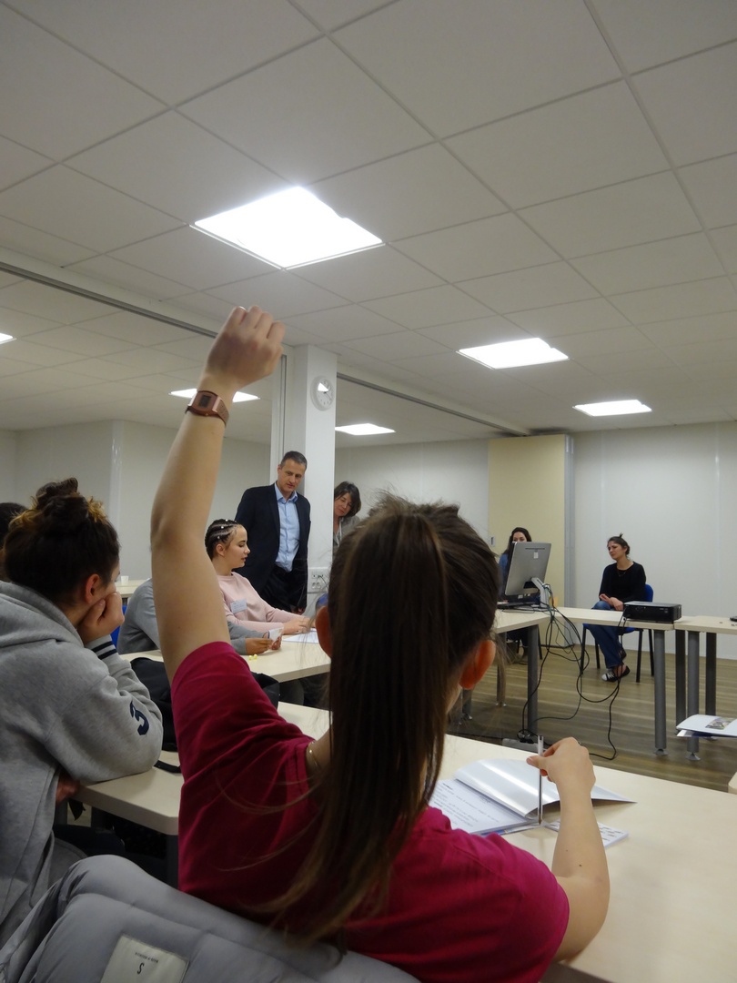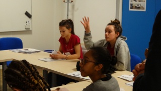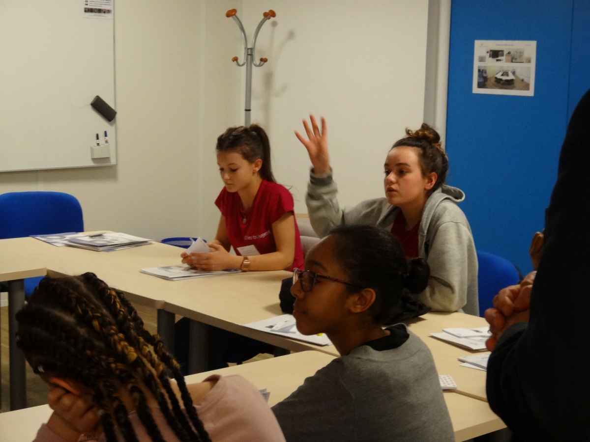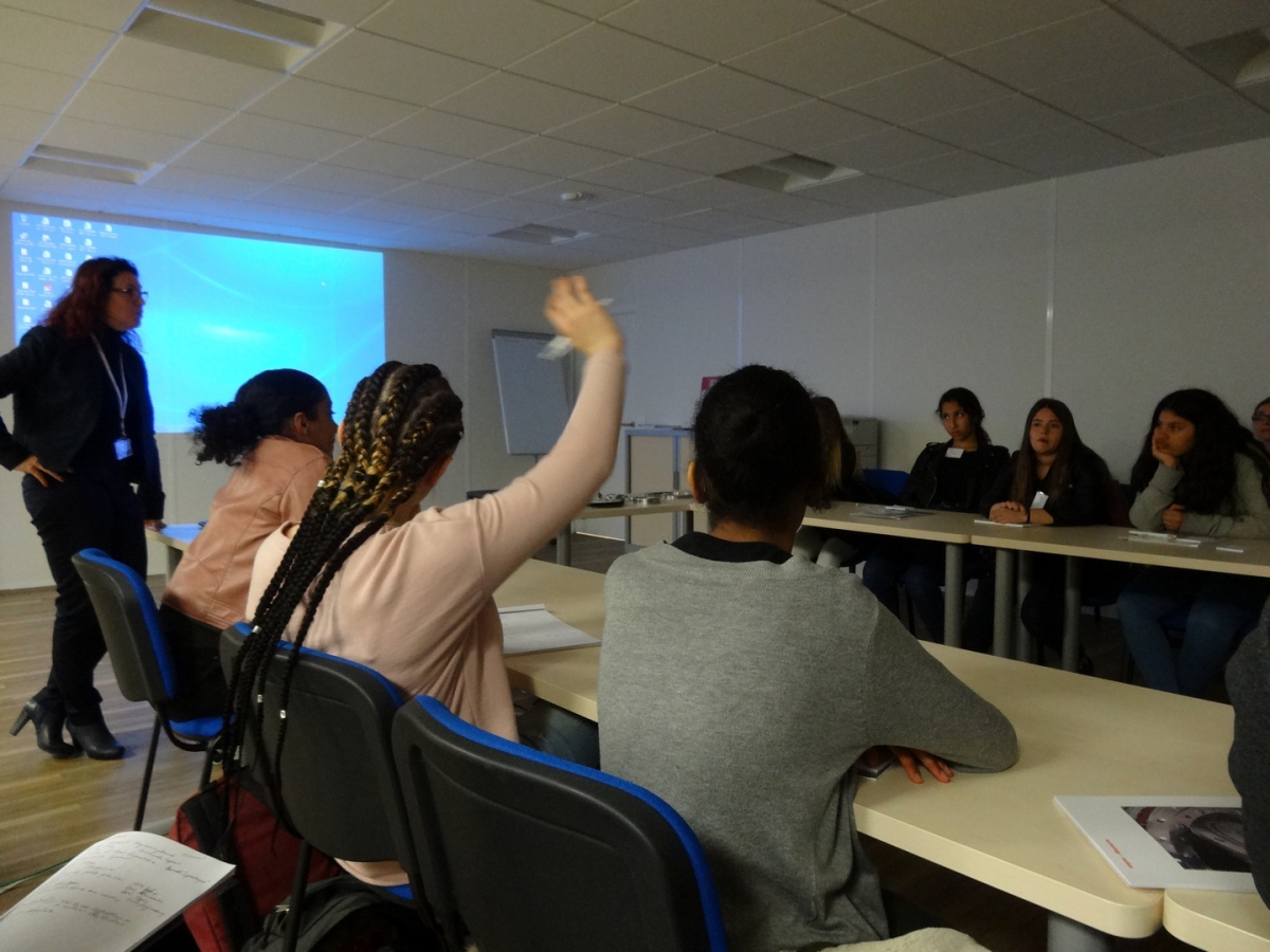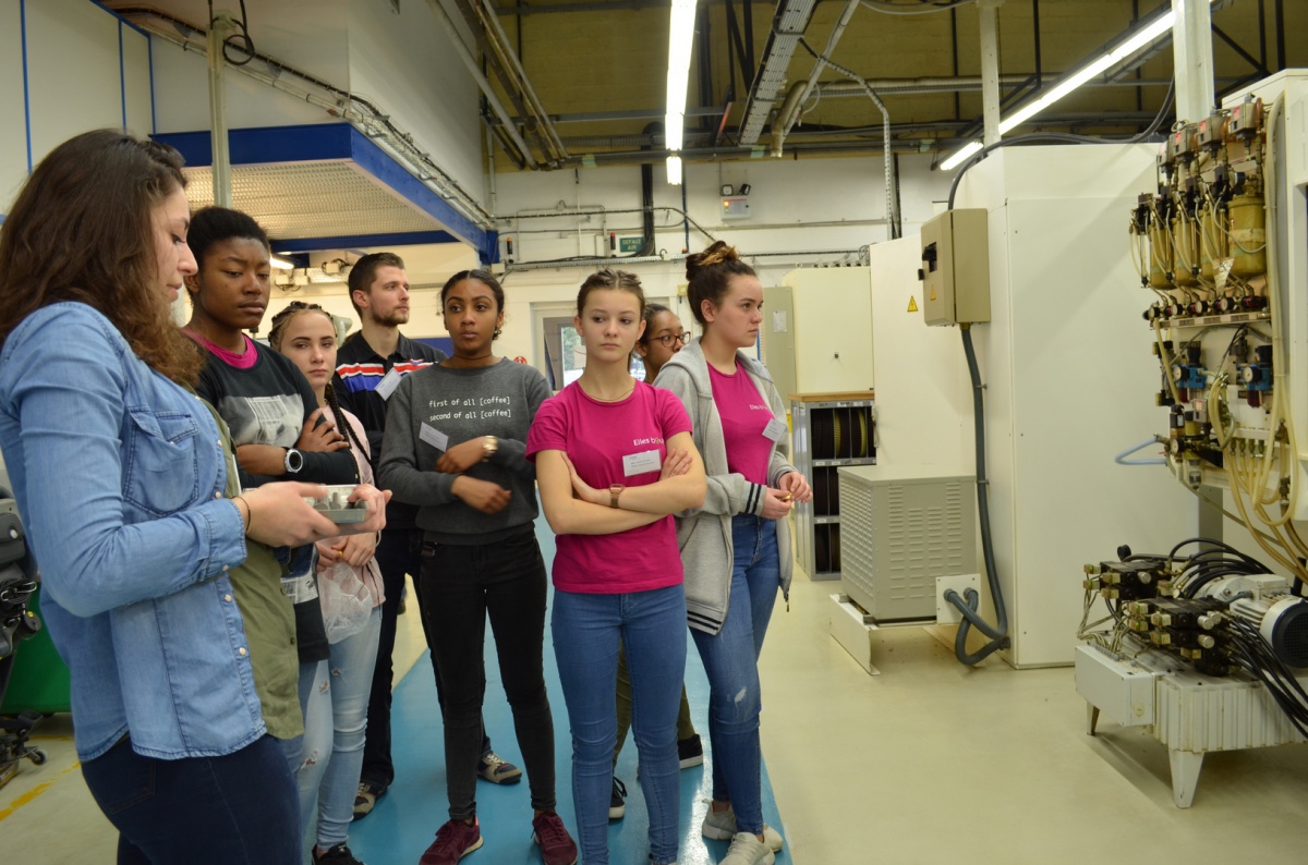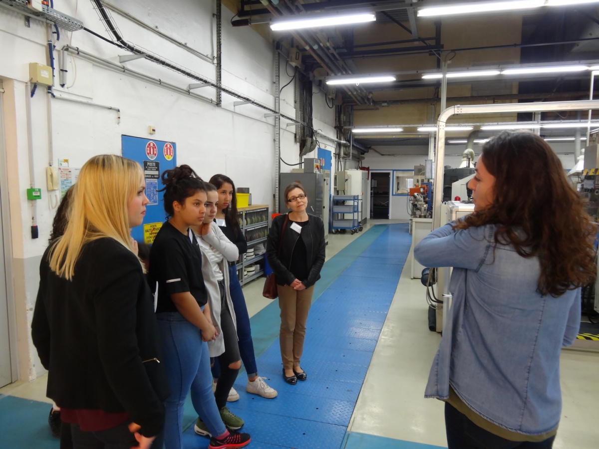 Les collégiennes étaient accompagnées pour cette visite de Marine, qui travaille au service « méthodes », et Carine, chef d'équipe montage chez ADR. Egalement présents, leurs professeurs accompagnants, Laura Rouxel, marraine « Elles Bougent », qui avait participé au challenge de décembre dernier, et deux représentantes d'Artema et de la FIM. Après le déjeuner, des collaboratrices de la société ADR ont rejoint le groupe de jeunes filles pour leur présenter leur métier et leur formation professionnelle.
