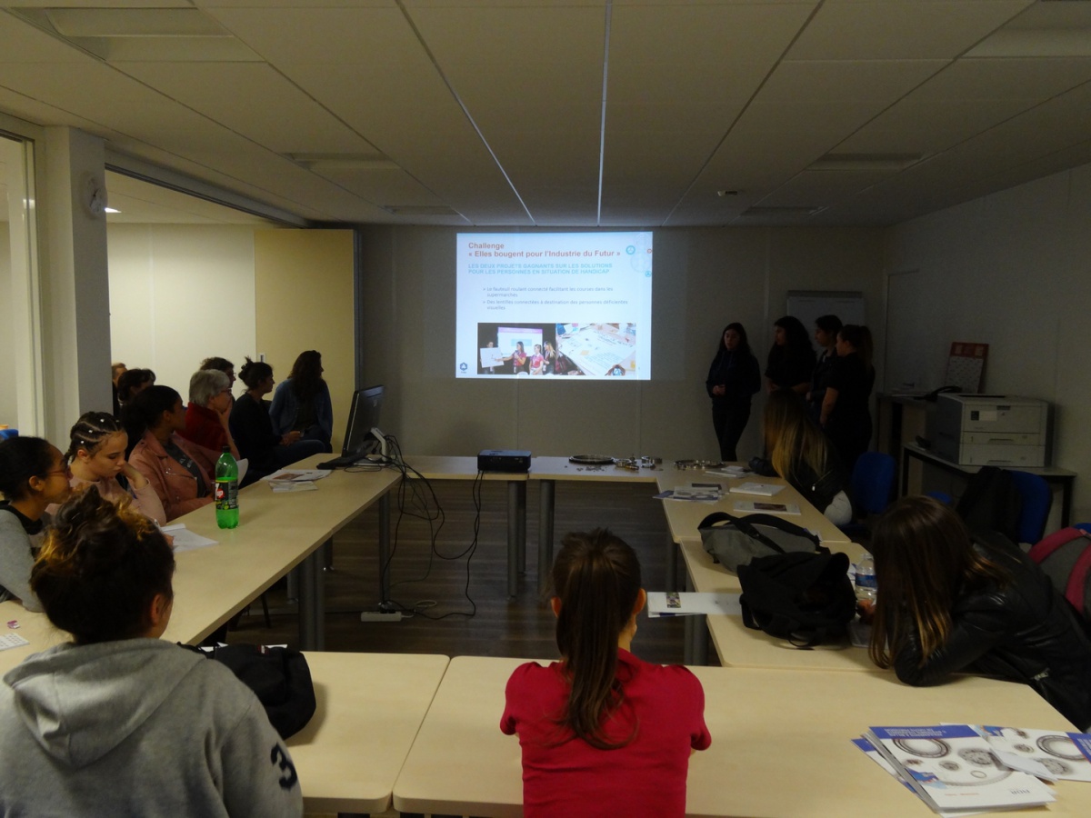 Les élèves du collège René Barthélémy devaient concevoir un objet connecté, dans le cadre du challenge proposé à une trentaine de collégiennes organisé par la FIM, la DGE et l'Association Elles bougent le 8 décembre 2016, lors du salon Convergence pour l'Industrie du Futur. Trente collégiennes des départements de la Seine-et-Marne et du Val d'Oise ont découvert l'industrie et ses métiers au travers d'un parcours sur le salon. Encadrées par des marraines (ingénieures ou techniciennes), elles ont ensuite imaginé un objet ou une solution du futur, qu'elles ont présenté devant un jury et les visiteurs du salon.